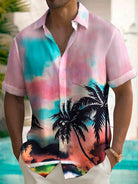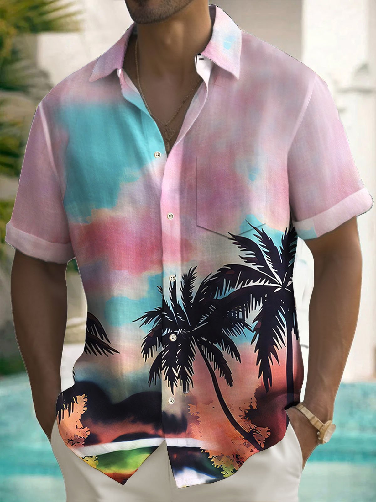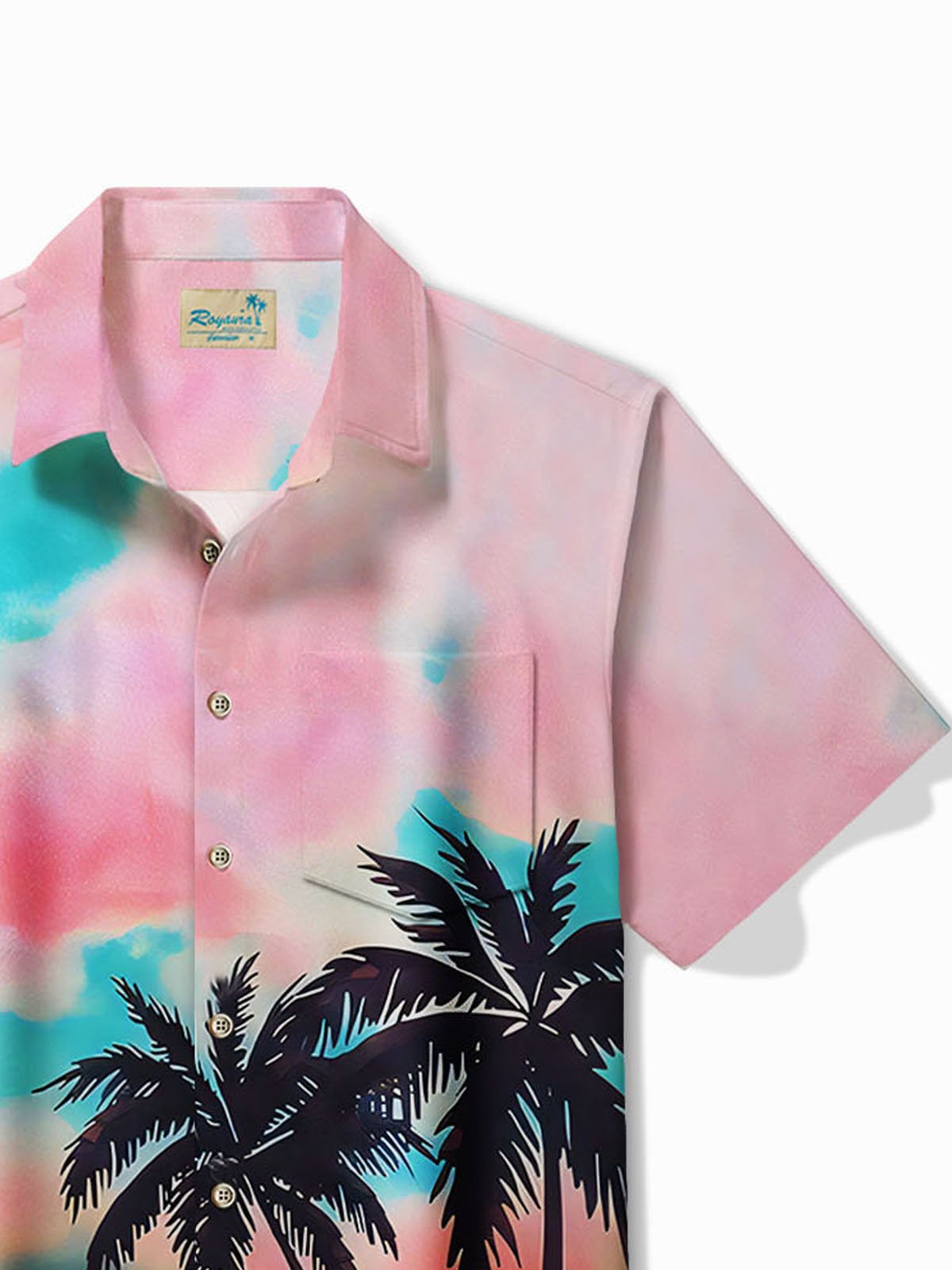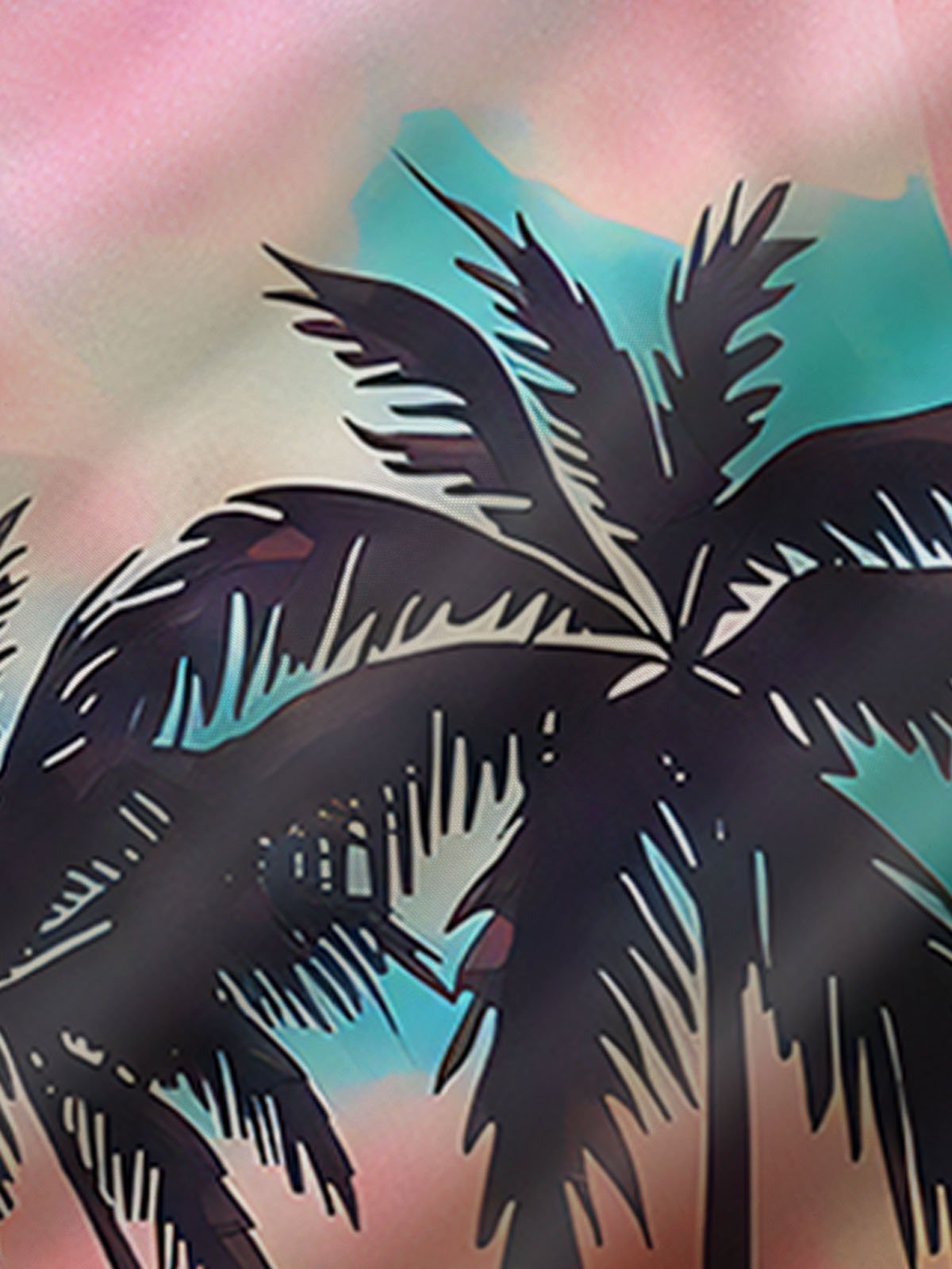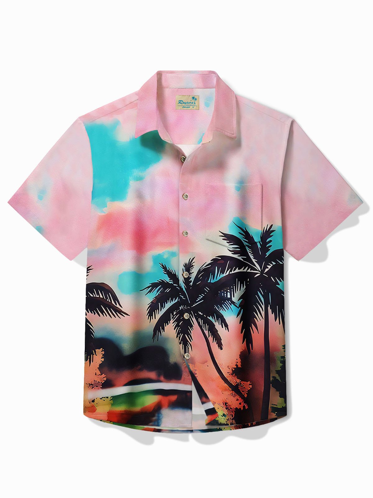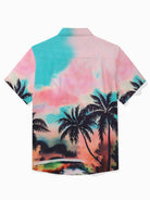 Alohadaddy Hawaiian Gradient Coconut Tree Print Men's Button Pocket Short Sleeve Shirt