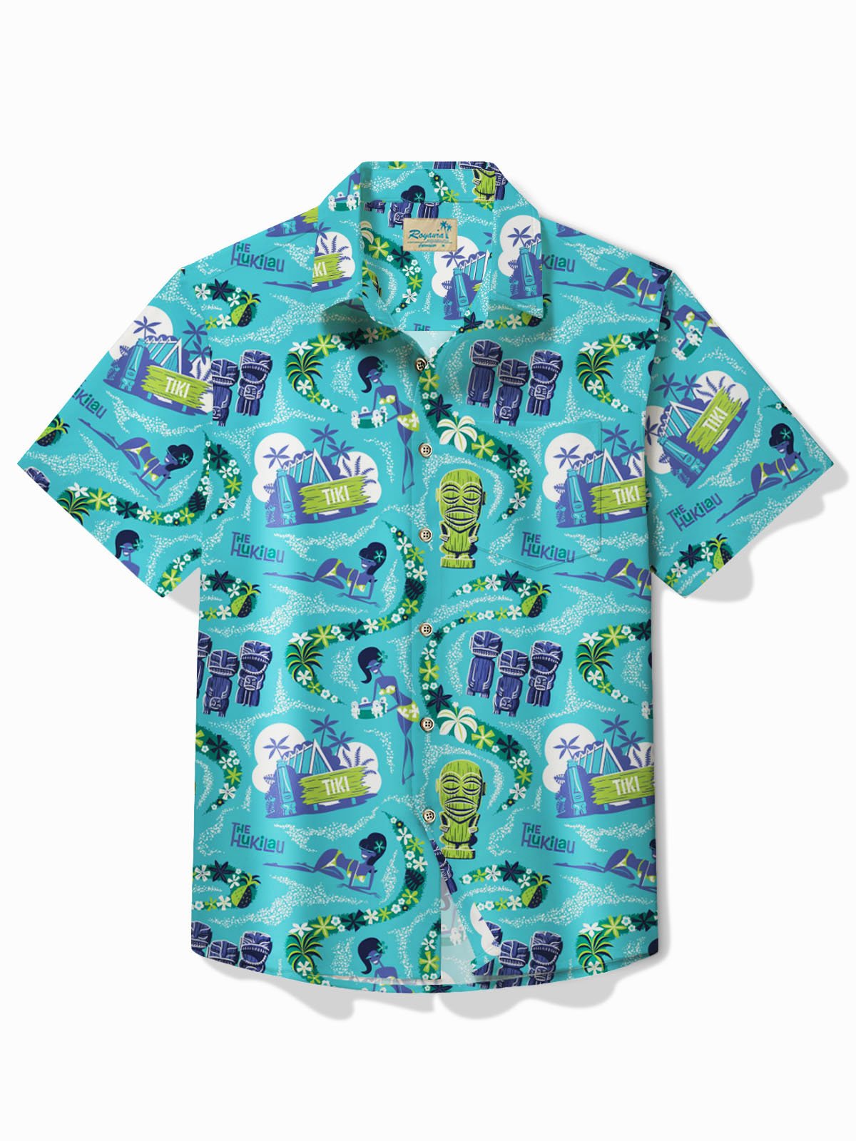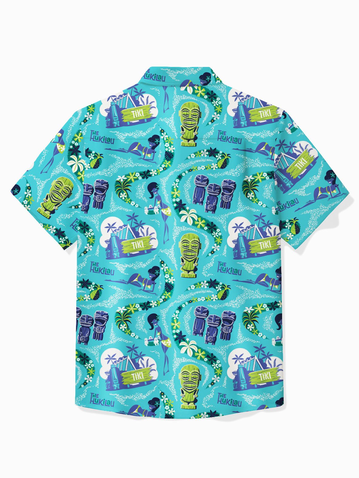Alohadaddy Hawaiian Tiki Printed Men's Button Pocket Shirt