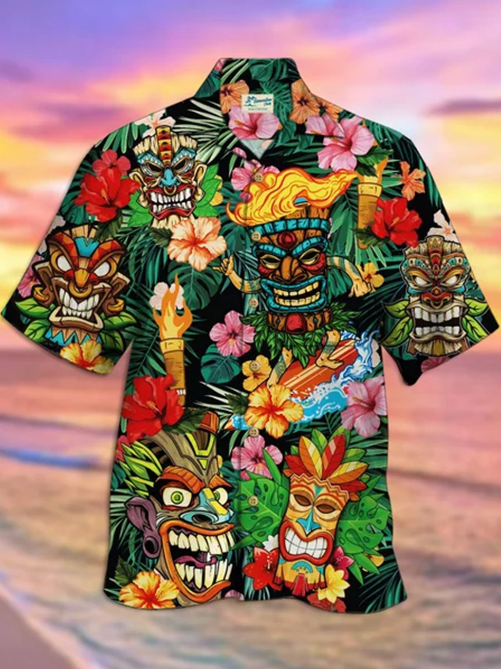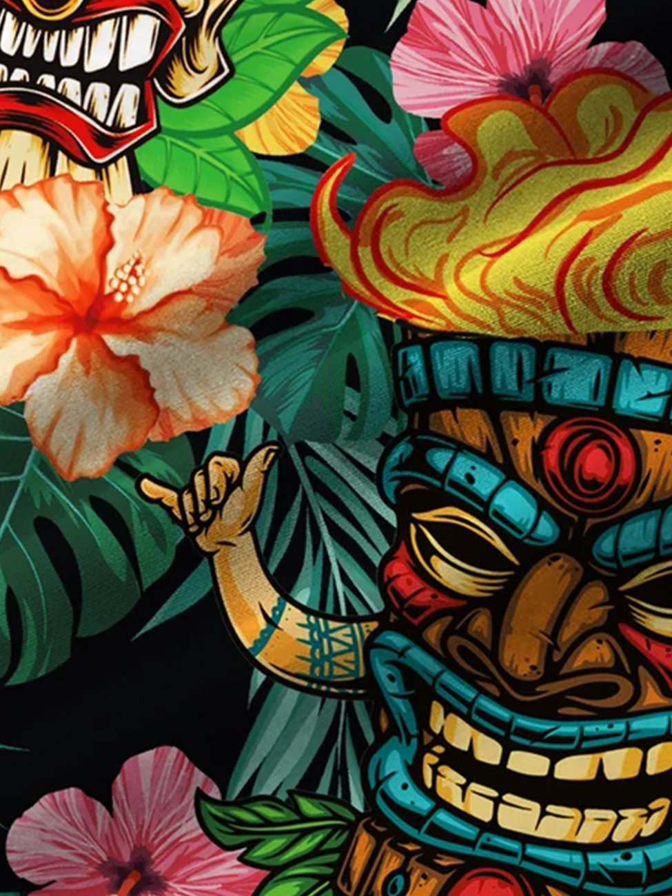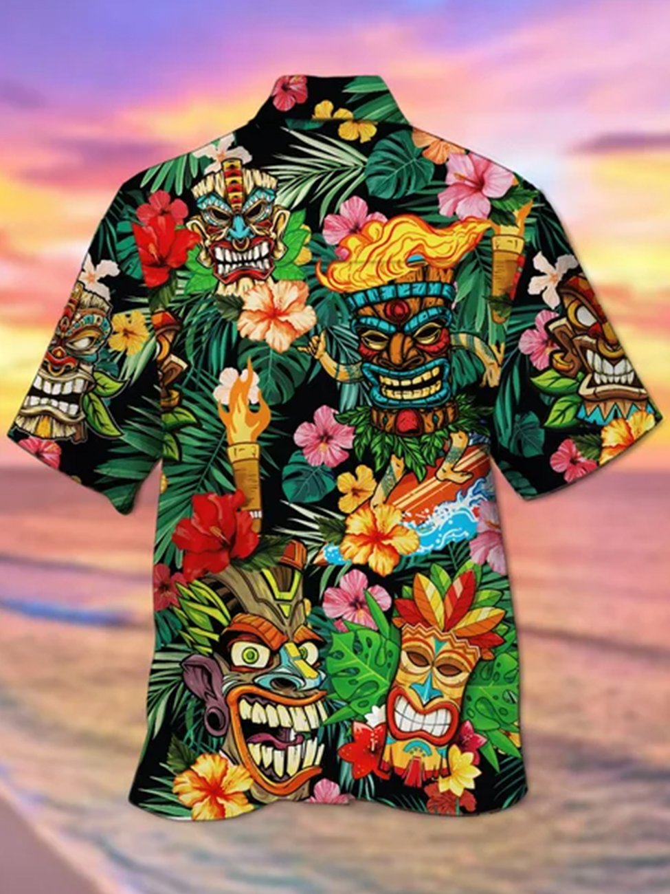 Alohadaddy Men's Plus Holiday Hawaiian Beach Tiki Totem Culture Quick Dry Wrinkle Free Plus Size shirt