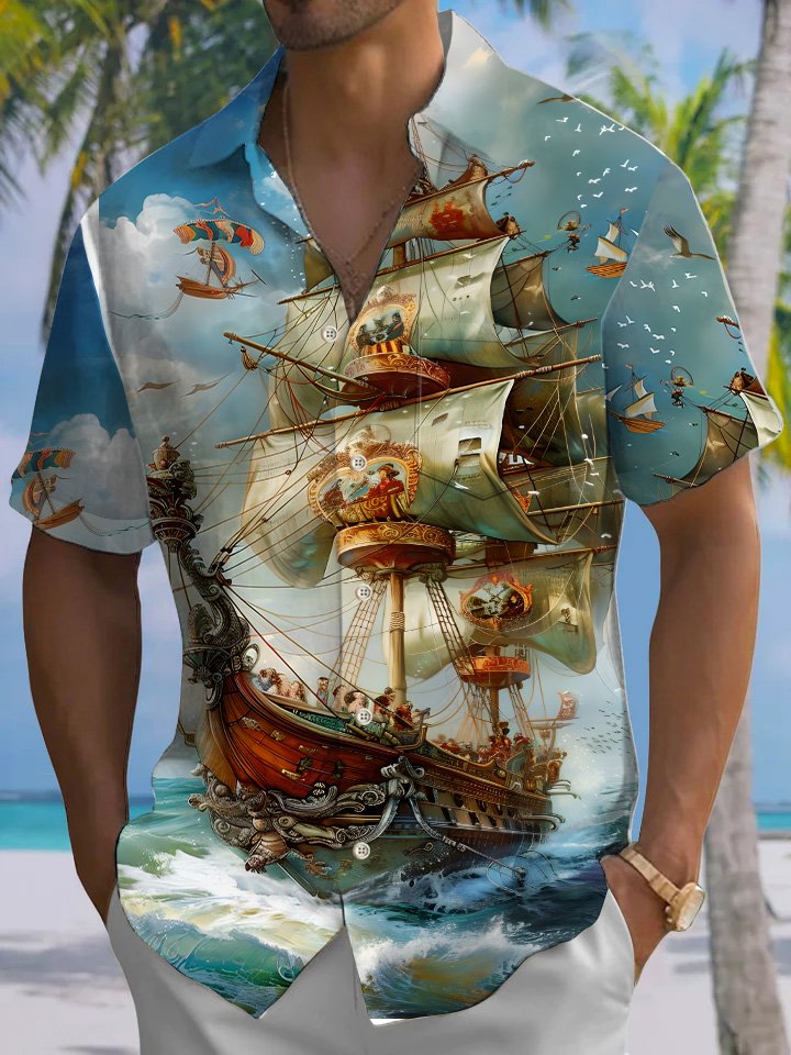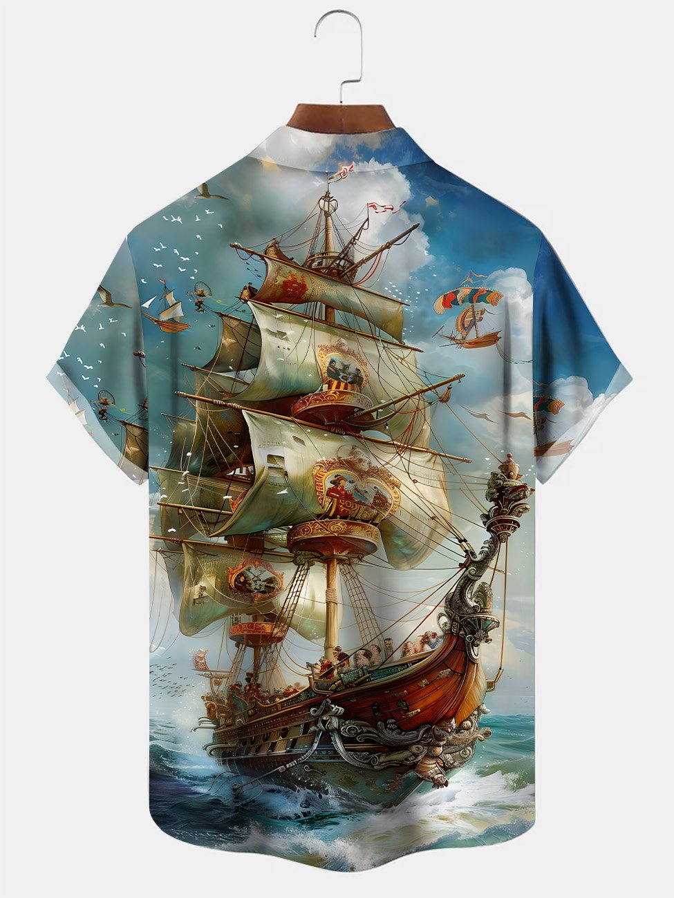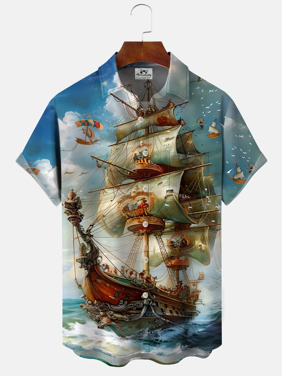 Alohadaddy Ocean Boat Vintage Button Pocket Casual Vacation Shirt