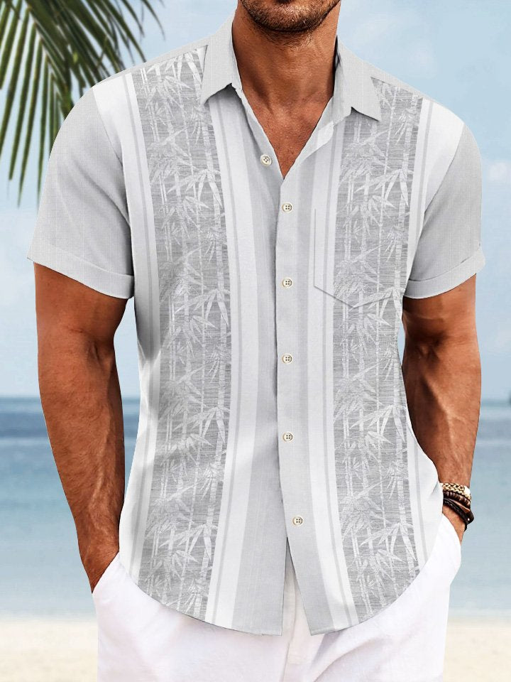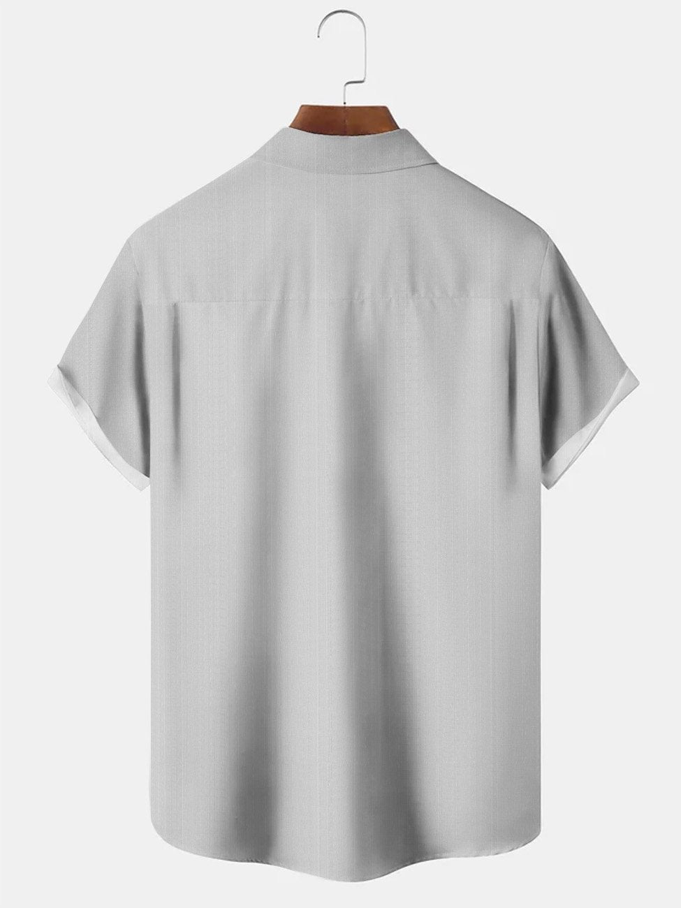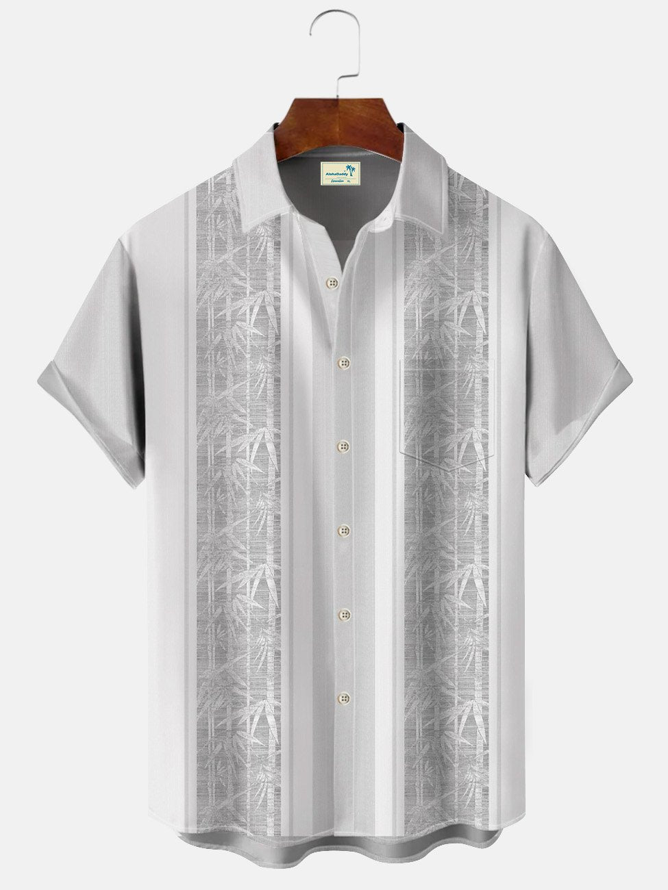 Alohadaddy Plant Bamboo Men's Button Pocket Casual 50S Bowling Commuter Short Sleeve Shirt