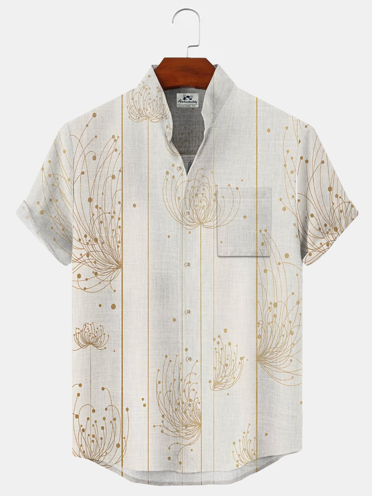 Alohadaddy Plant Flower Pocket Casual Short Sleeve Stand Collar Shirt