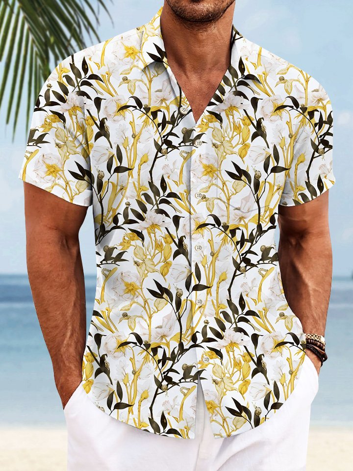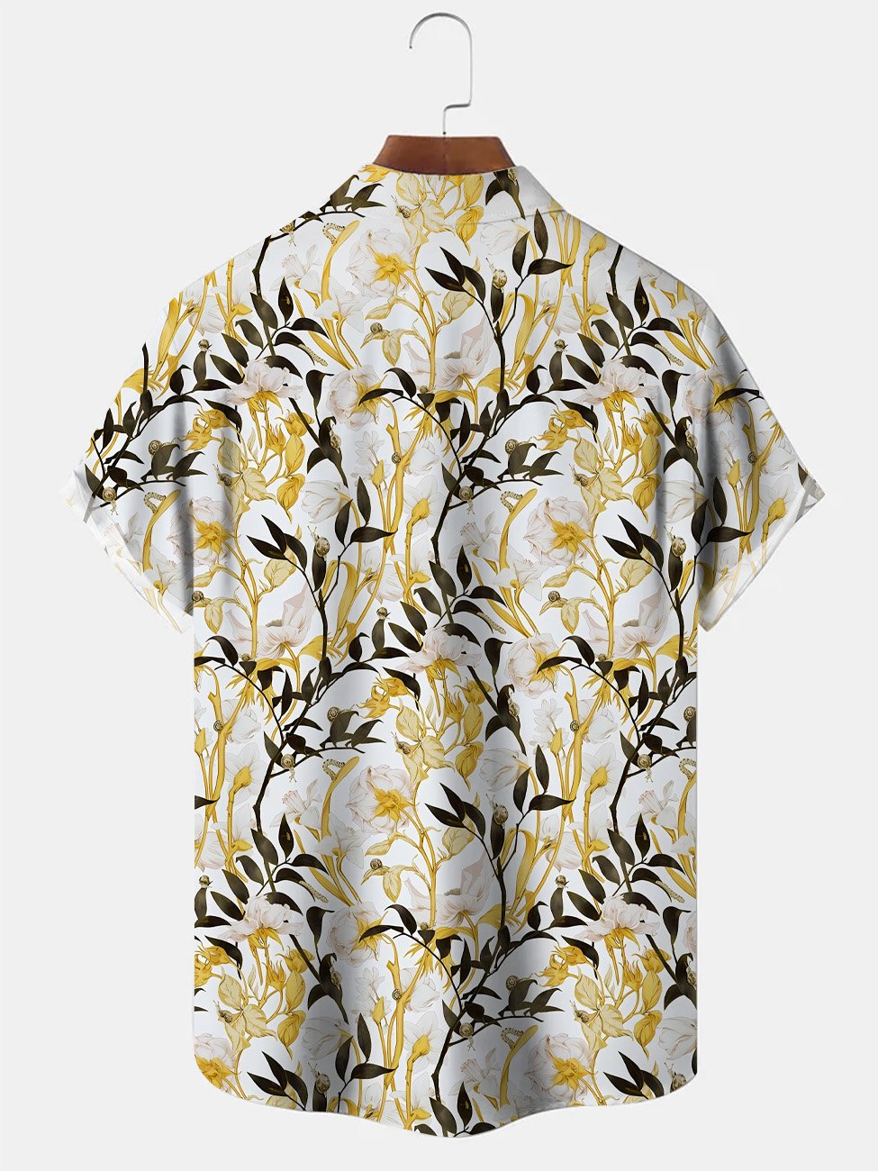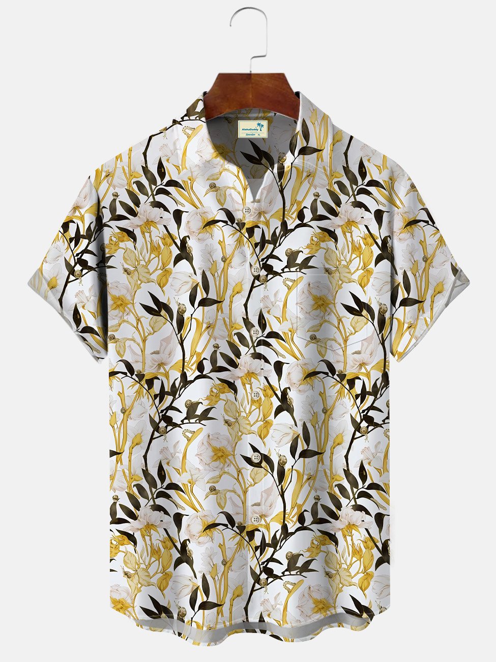 Alohadaddy Plants Rattan Leaves Buttons Pockets Casual Short Sleeve Shirt
