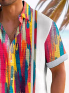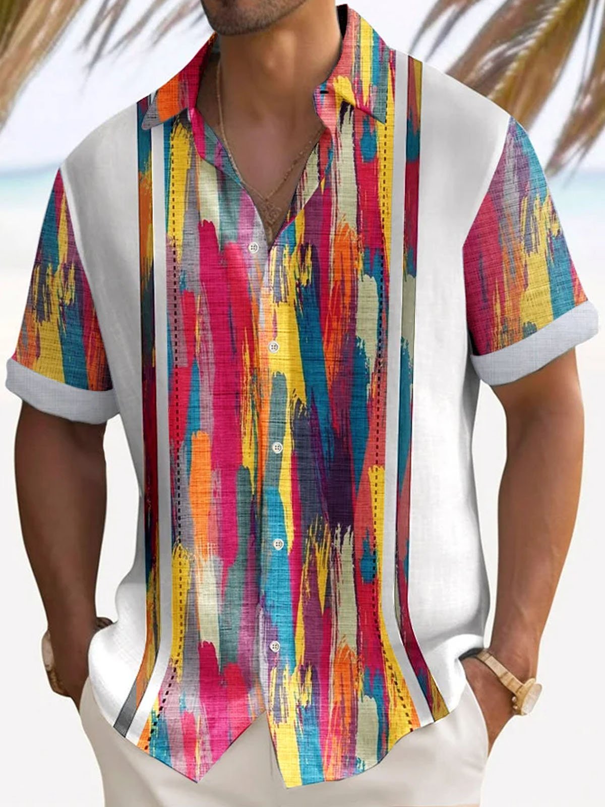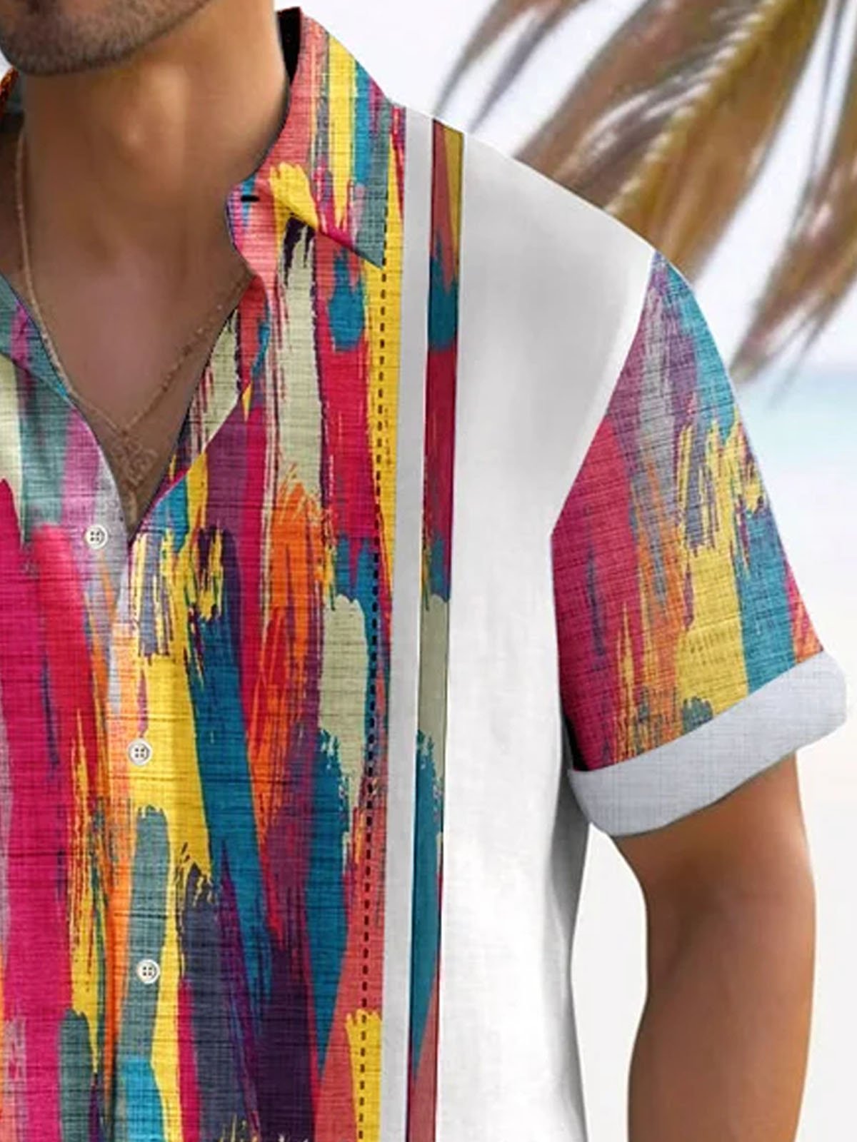Alohadaddy Retro Bowling Color Block 3D Digital Print Men's Button Pocket Short Sleeve Shirt Big & Tall