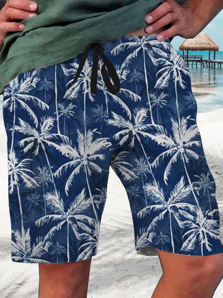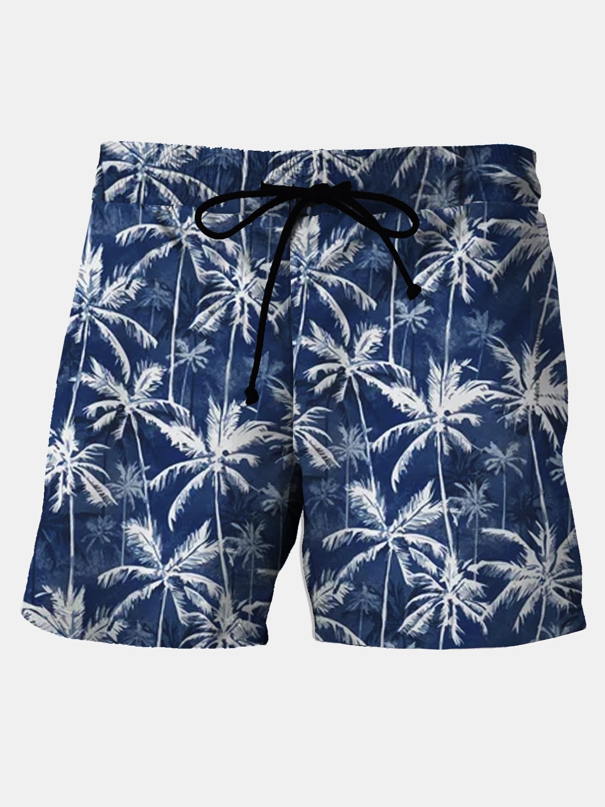 Alohadaddy Swim Trunks Coconut Palm Print Men's Vacation Hawaiian Big And Tall Aloha Board Shorts