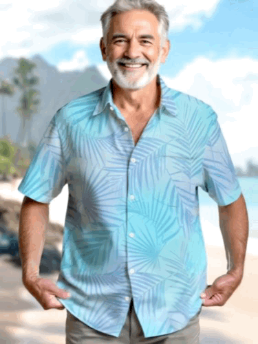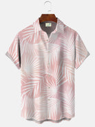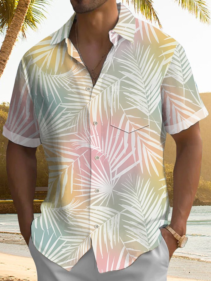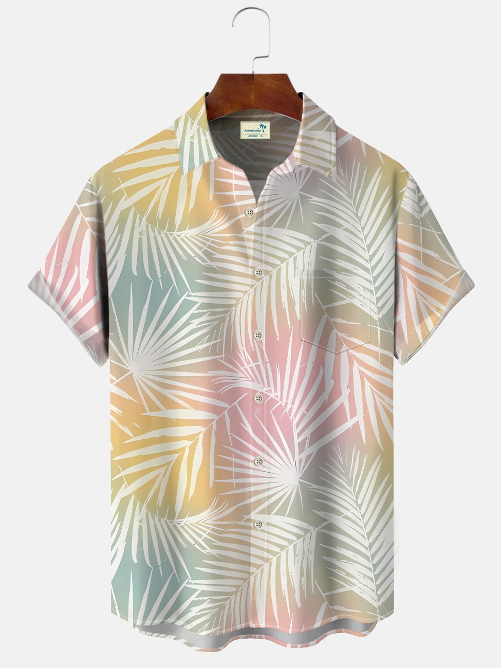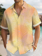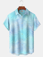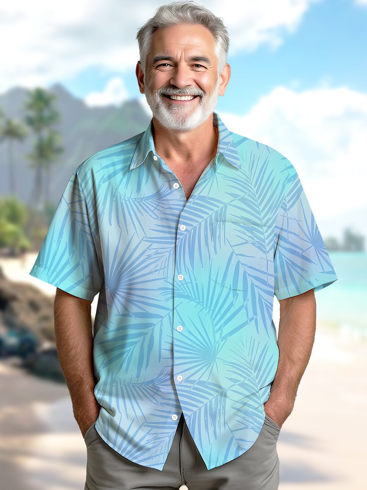 Men's Vacation Gradient Hawaiian Tropical Leaves Short-Sleeved Shirt Top