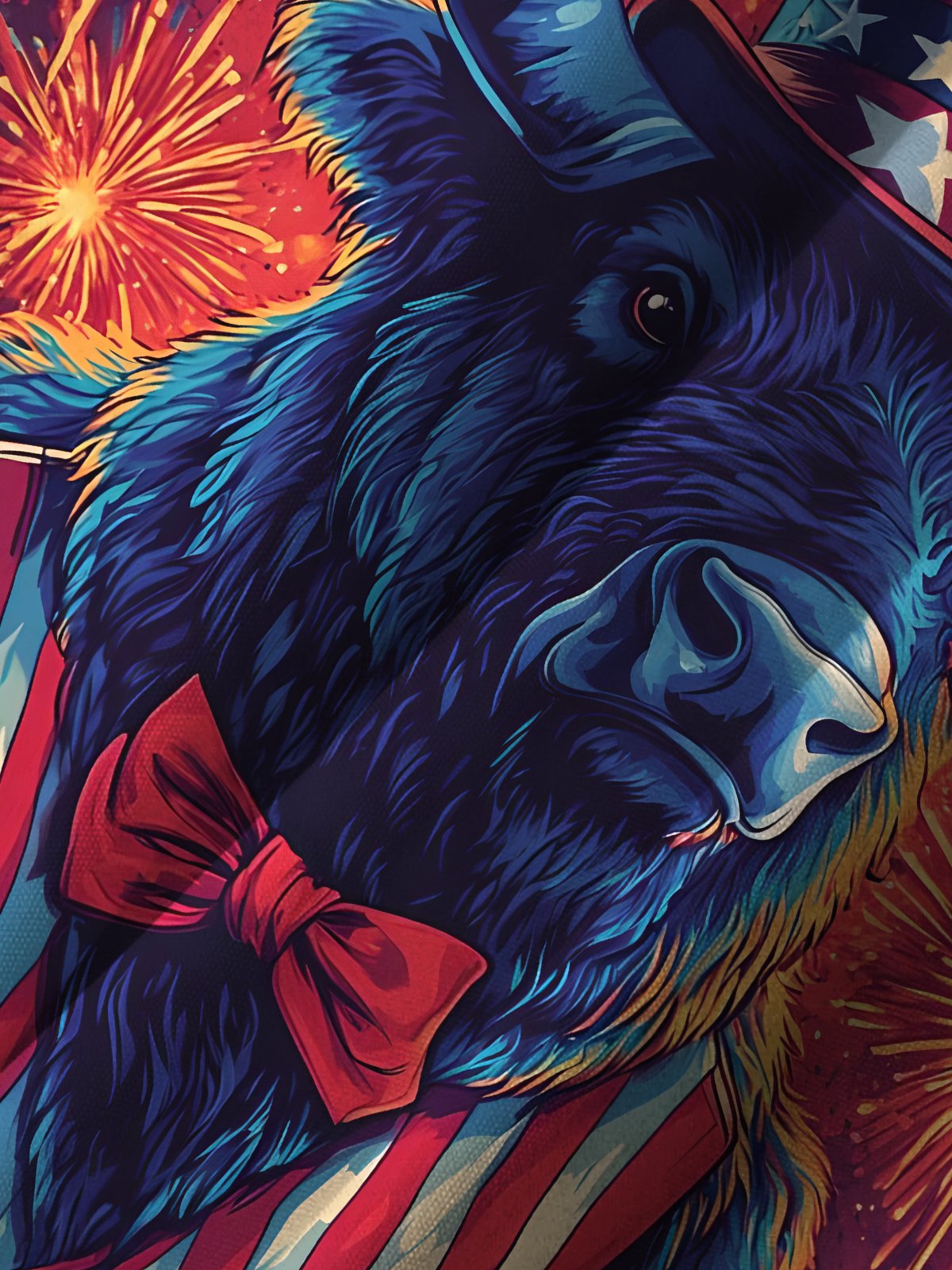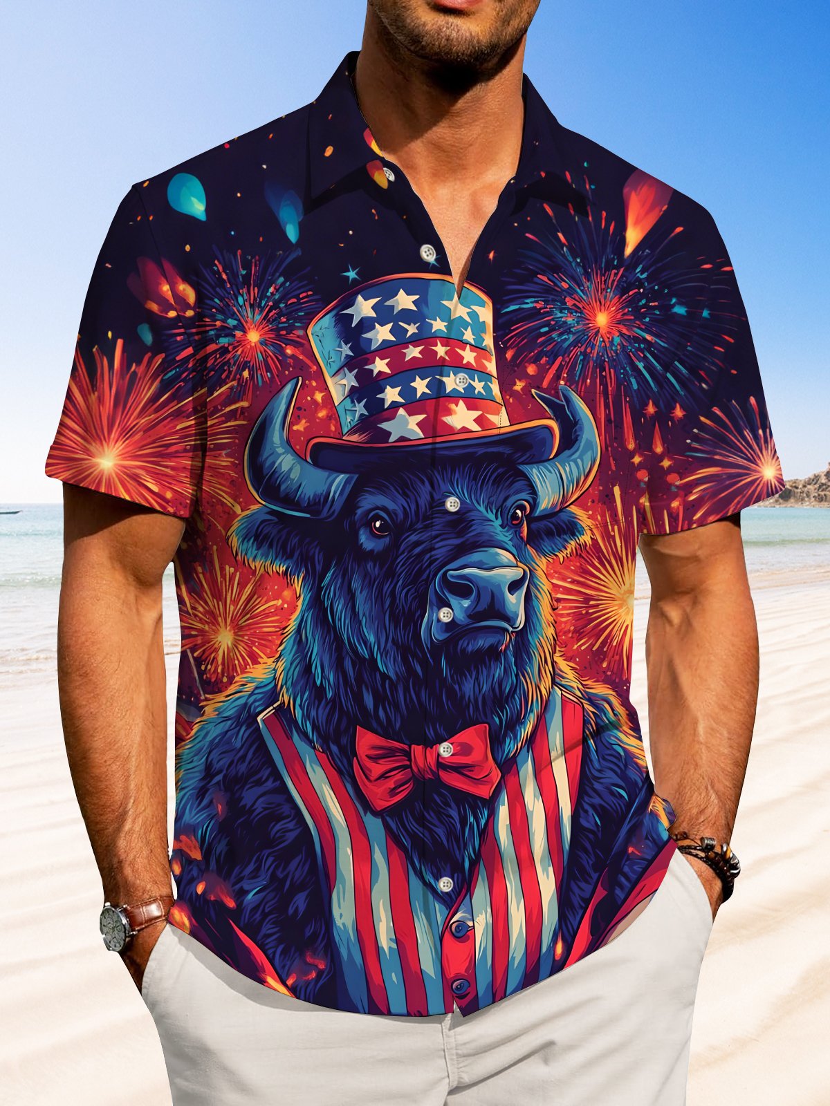 Alohadaddy Holiday Collection Independence Day Bull Button Cardigan Pocket Stretch Oversized Polyester Short Sleeve Shirt