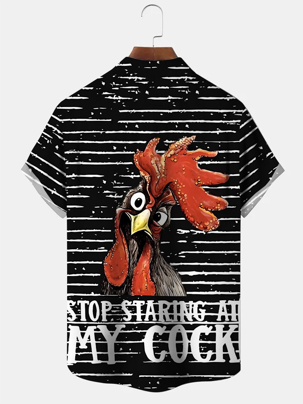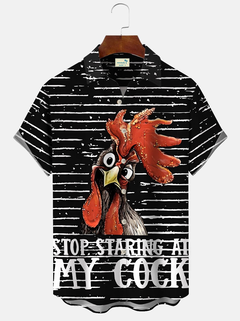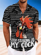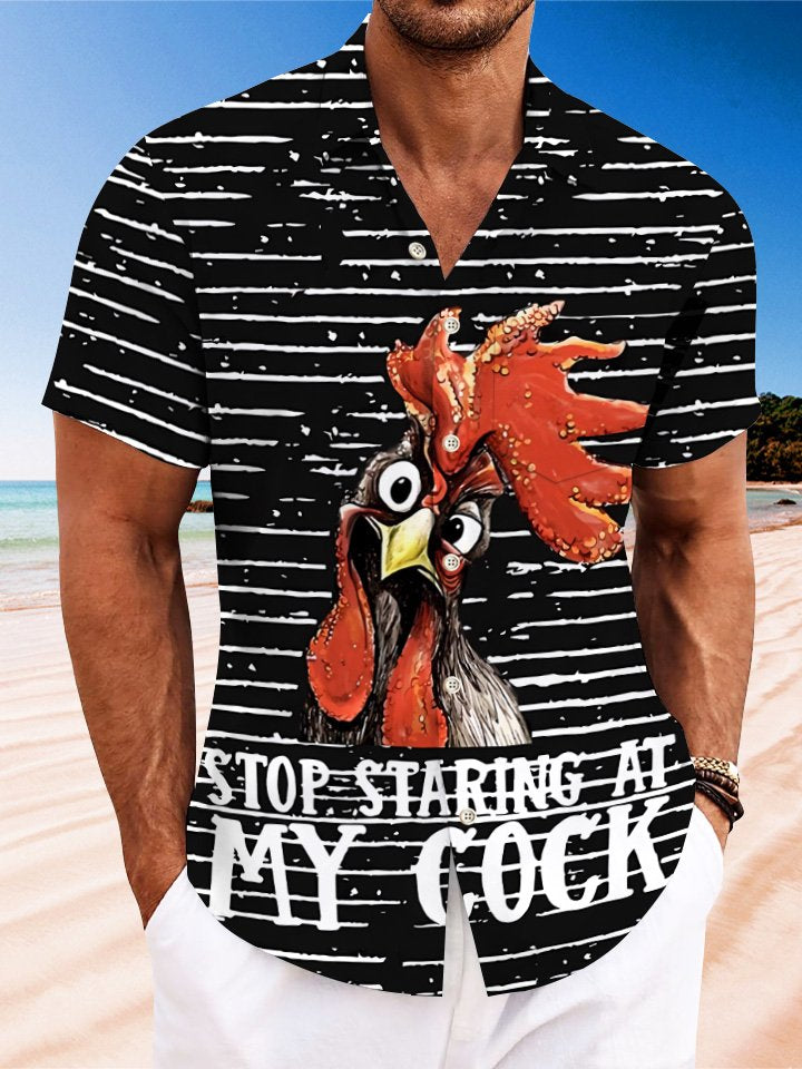 Alohadaddy Summer Geometric Lines Funny Rooster Men Button Pocket Casual Vacation Short Sleeve Shirt