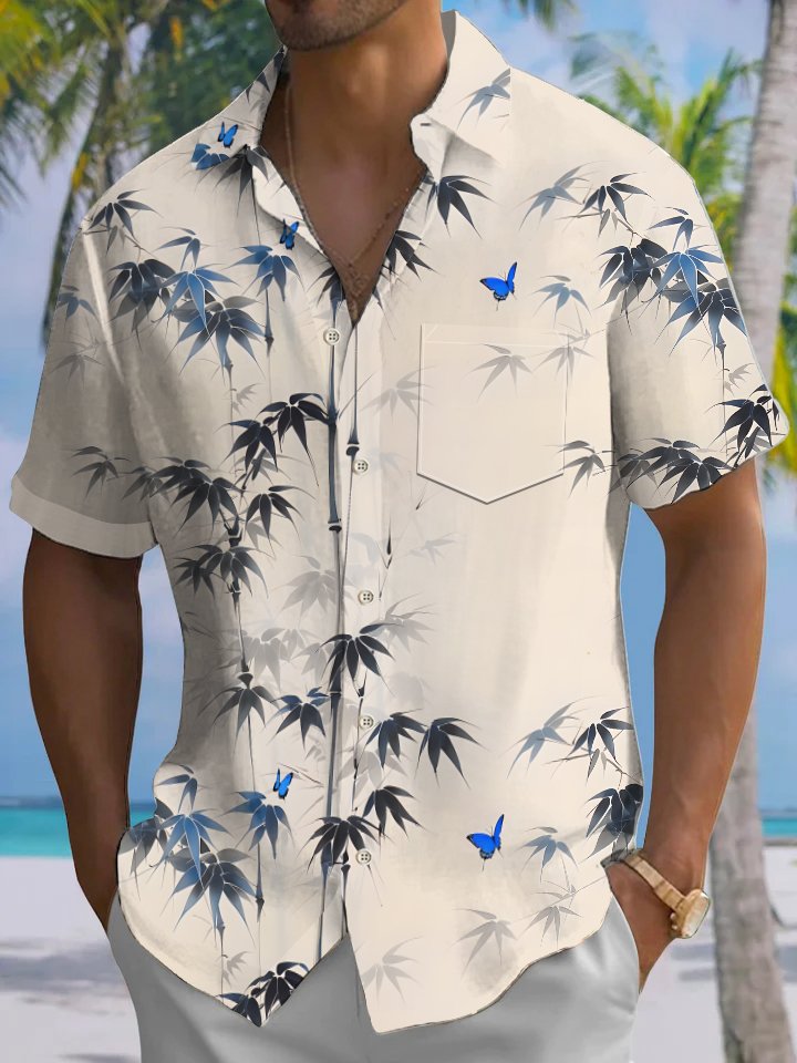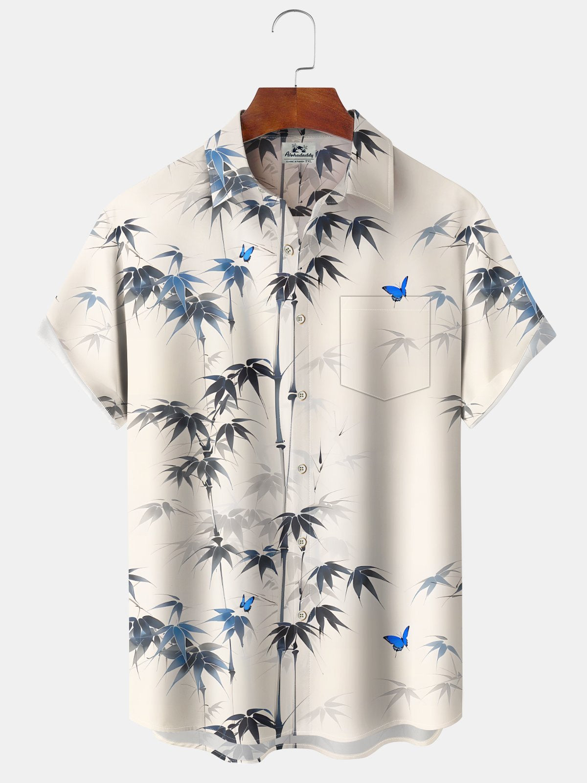 Alohadaddy® Bamboo Art Print Pockets Stretch Hawaiian Men's Short Sleeve Shirt Big & Tall