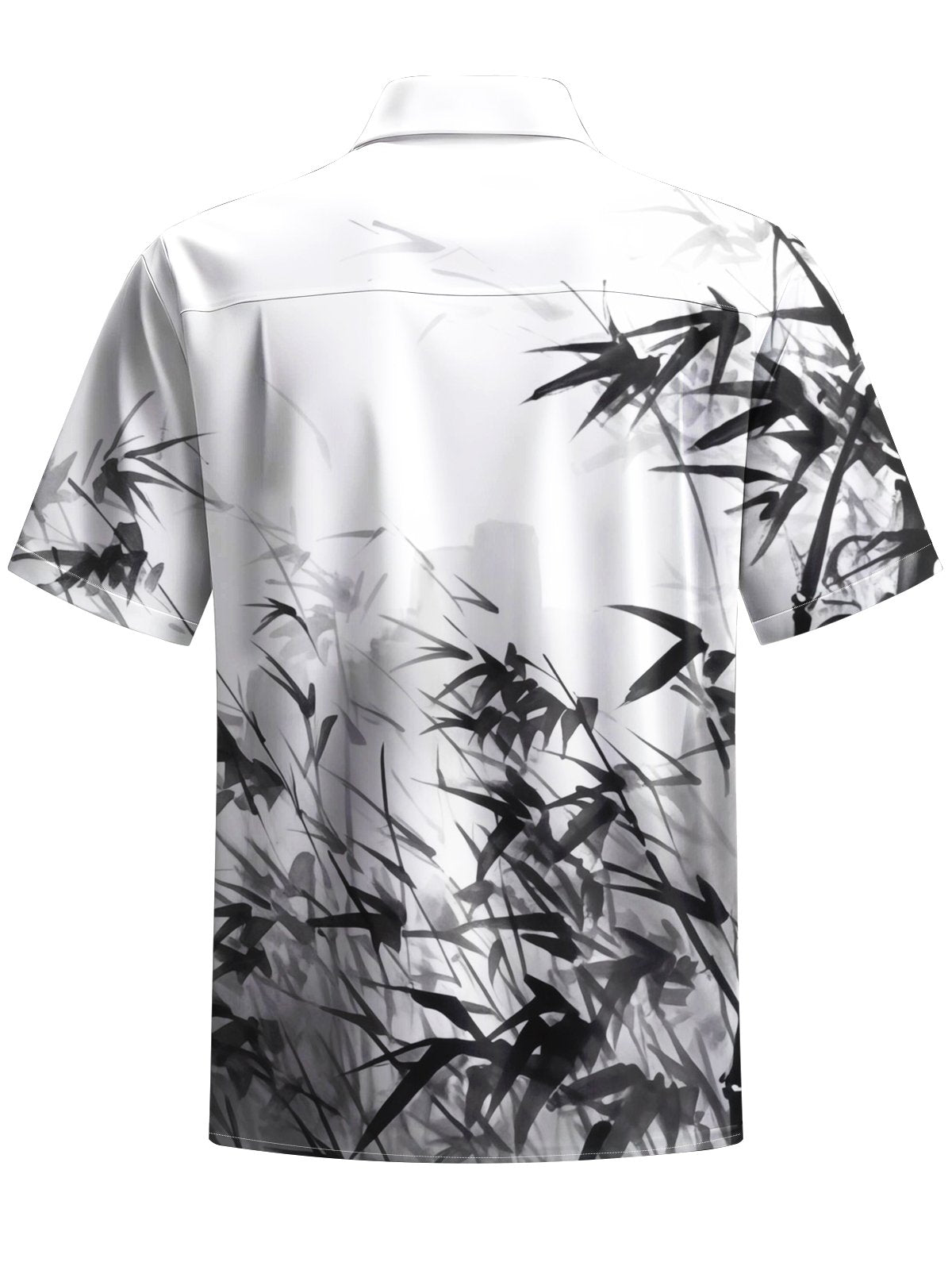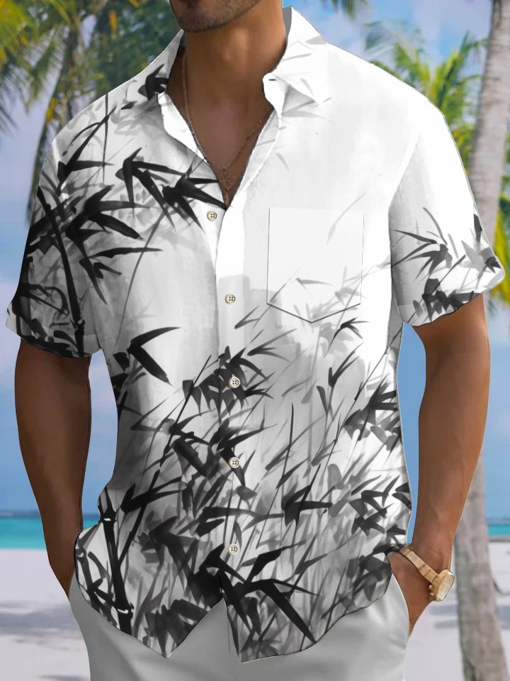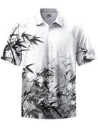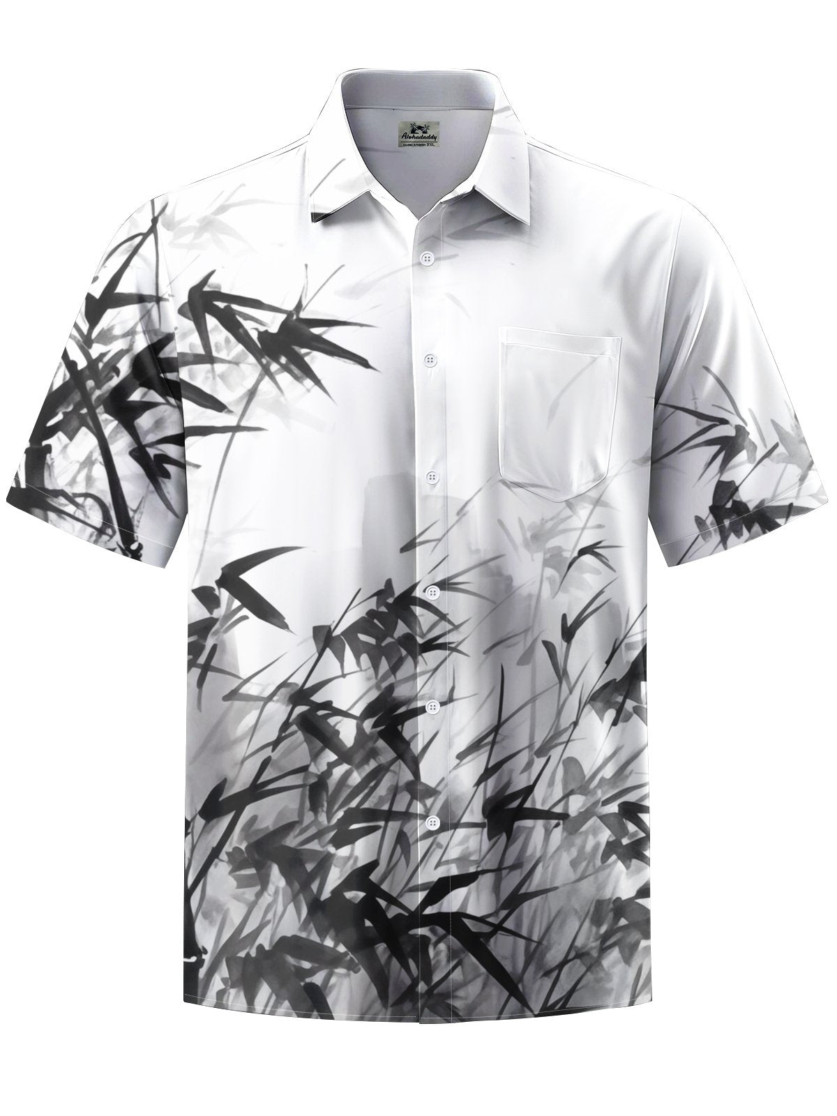 Alohadaddy® Casual Bamboo Ink Painting Print Art Chest Pocket Men's Short Sleeve Shirt Big & Tall