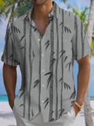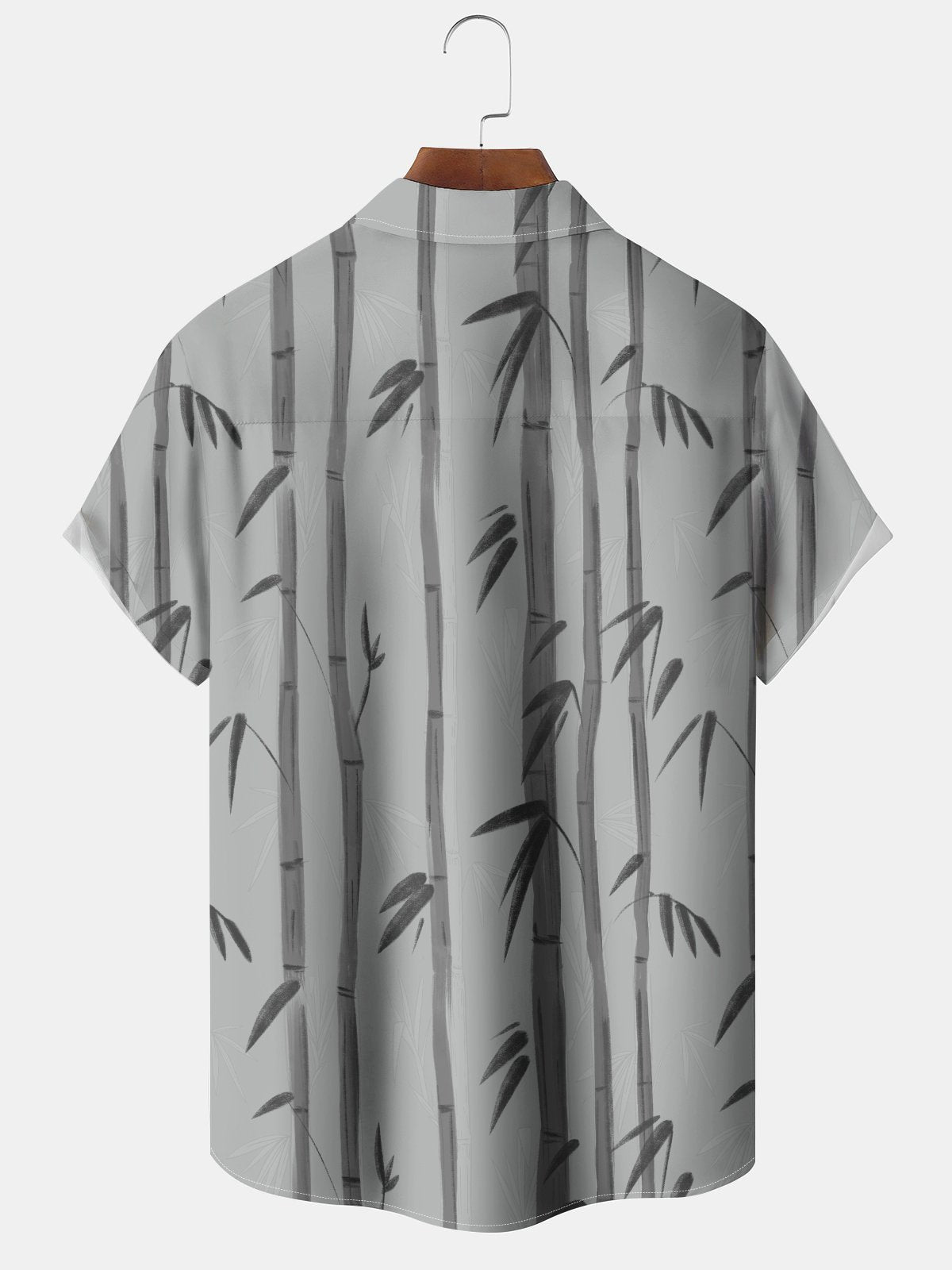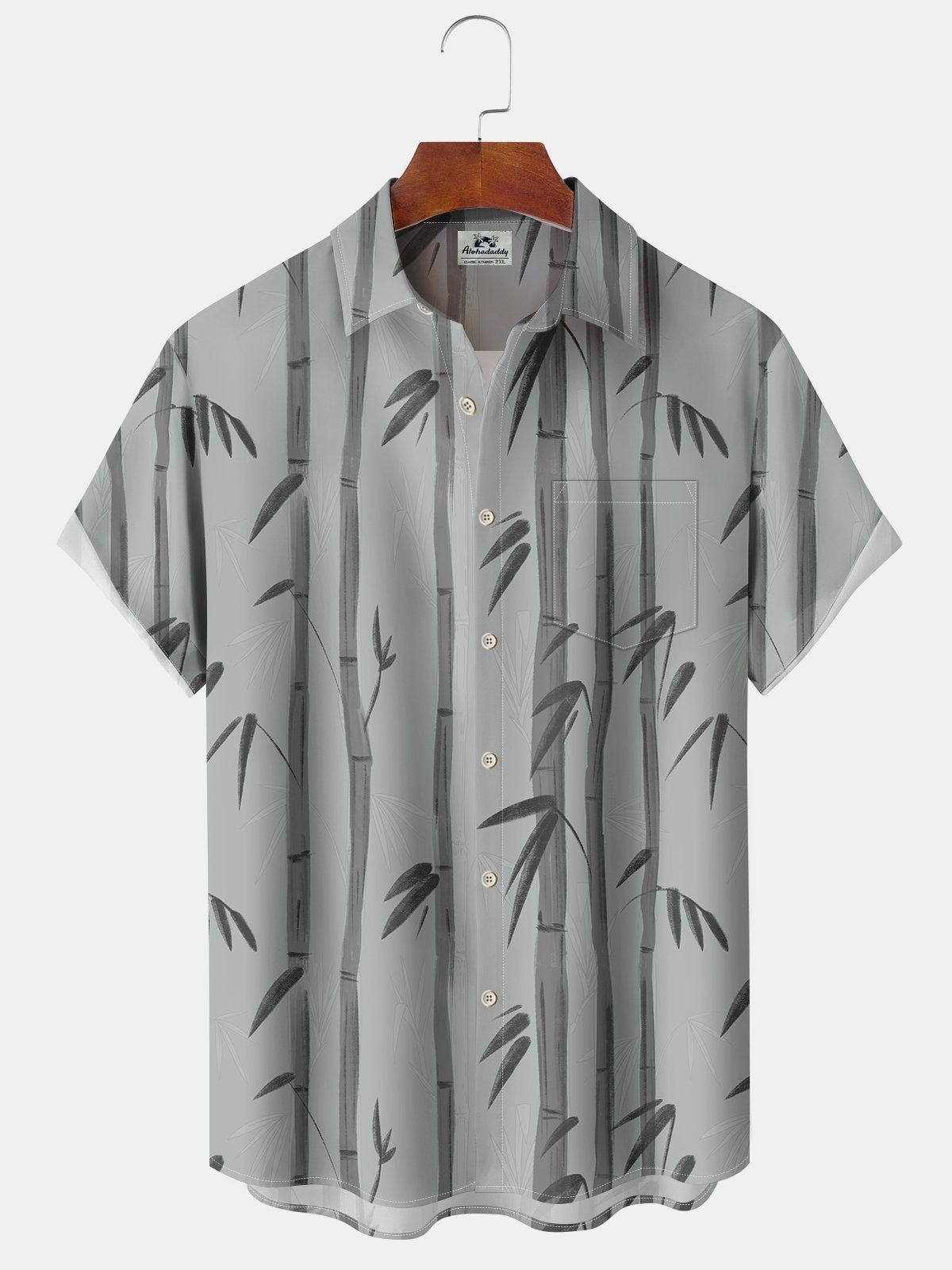 Alohadaddy® Casual Bamboo Print Art Moisture Wicking Chest Pocket Stretch Oversized Hawaiian Shirt