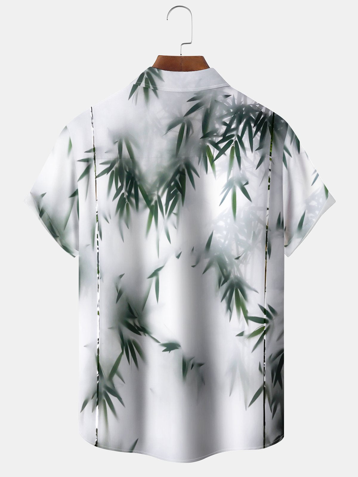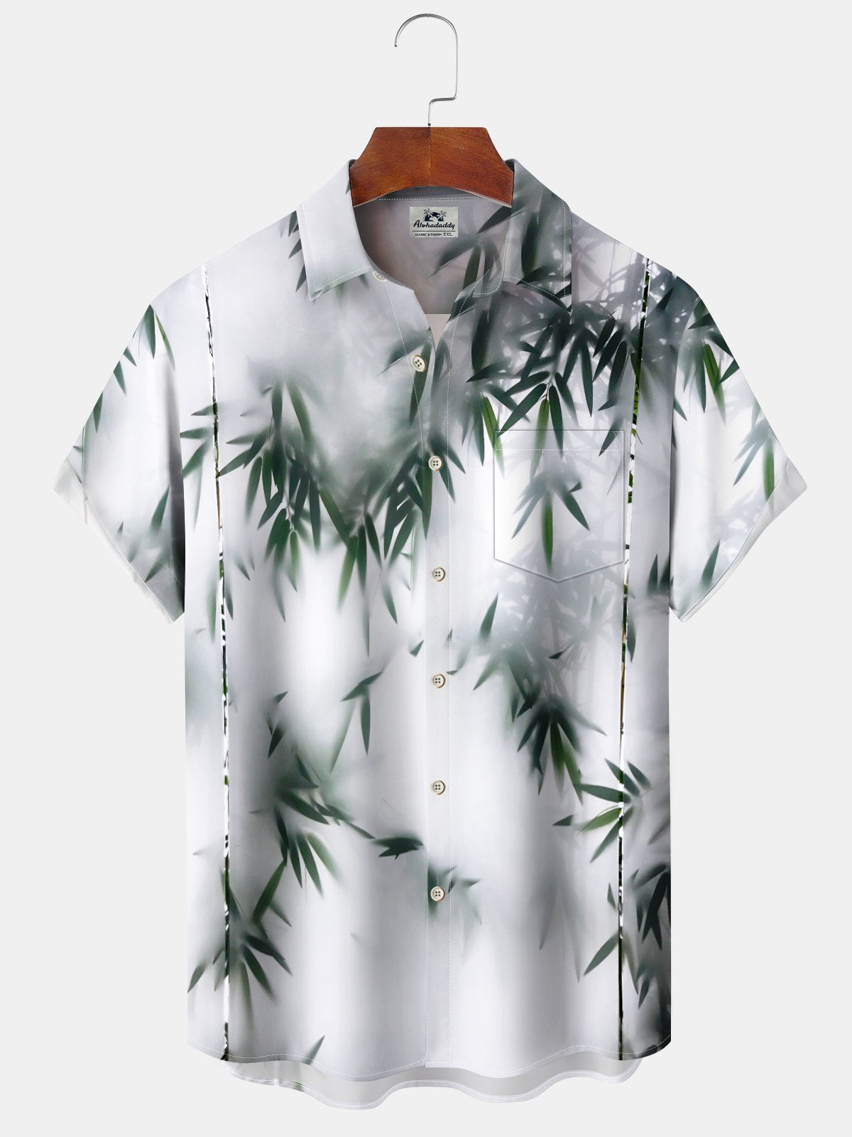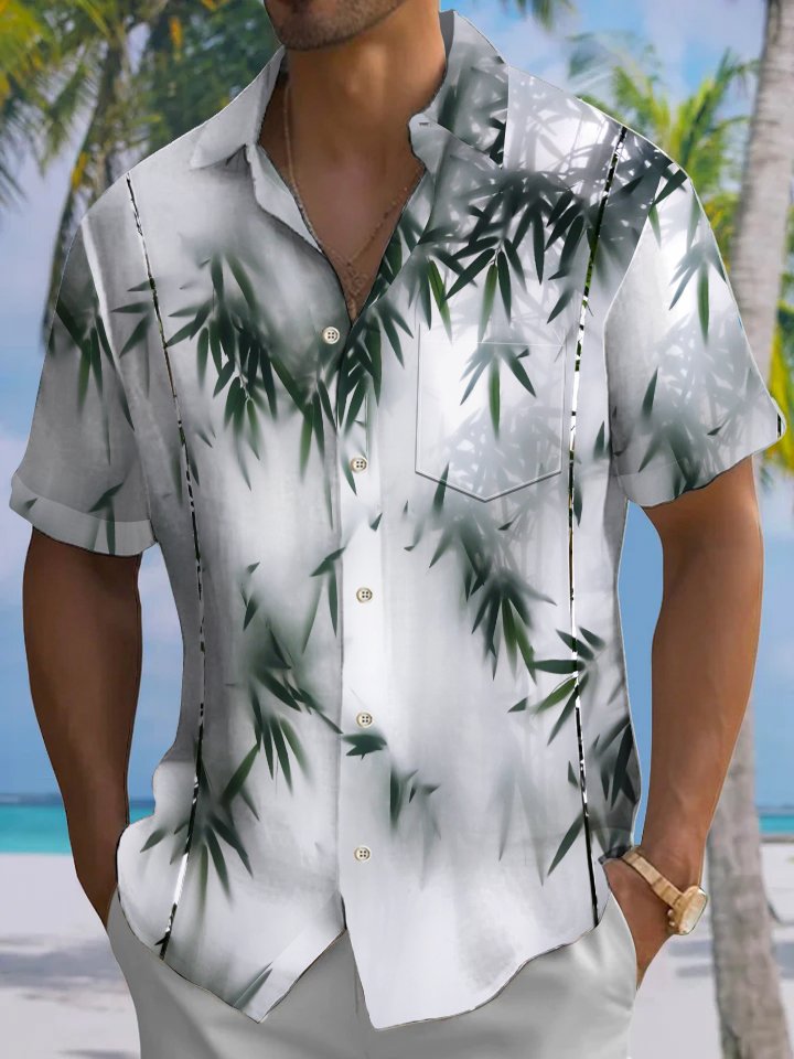 Alohadaddy® Casual Botanical Bamboo Stripes Art Print Chest Pocket Moisture Wicking Oversized Hawaiian Shirt