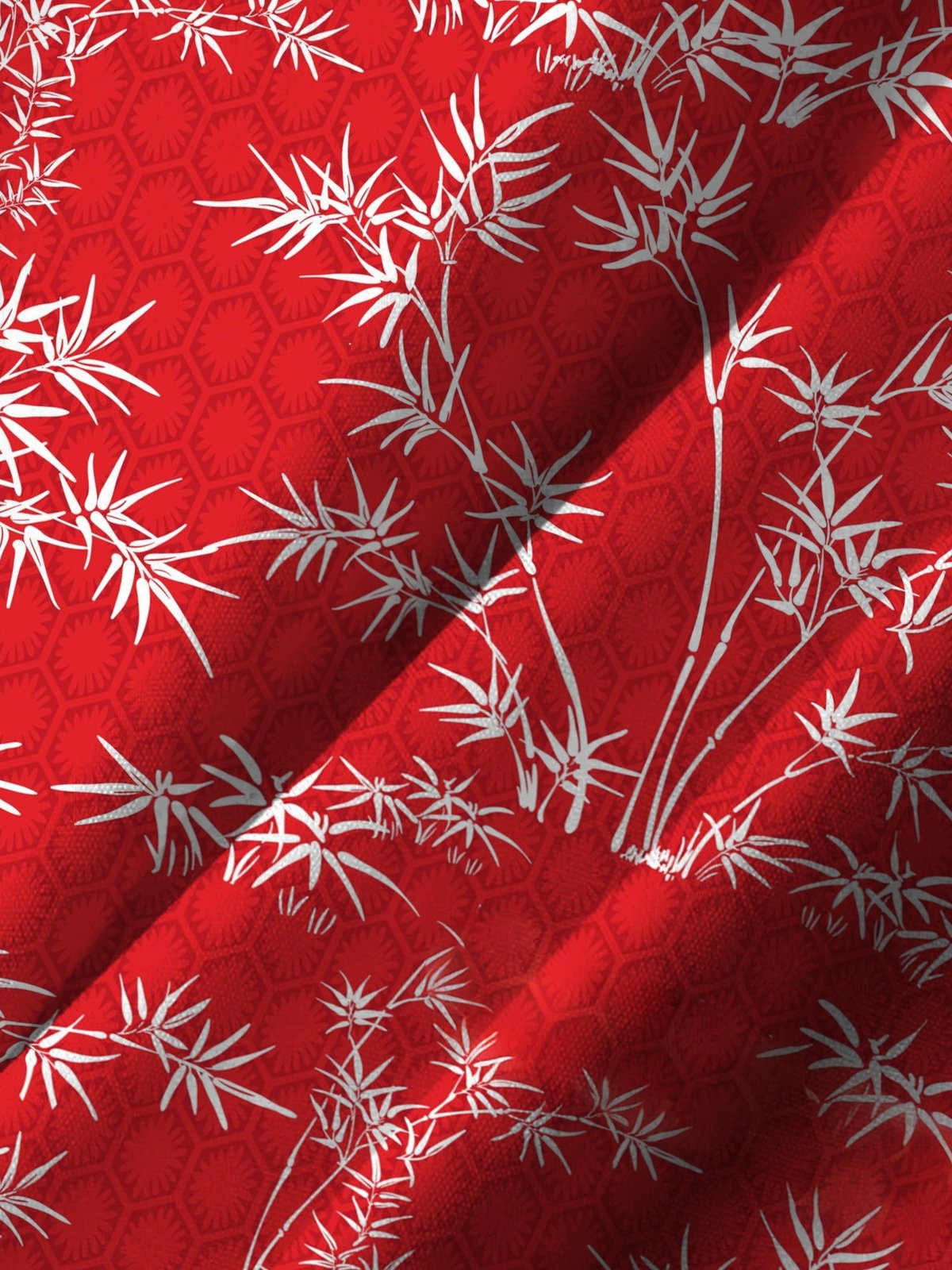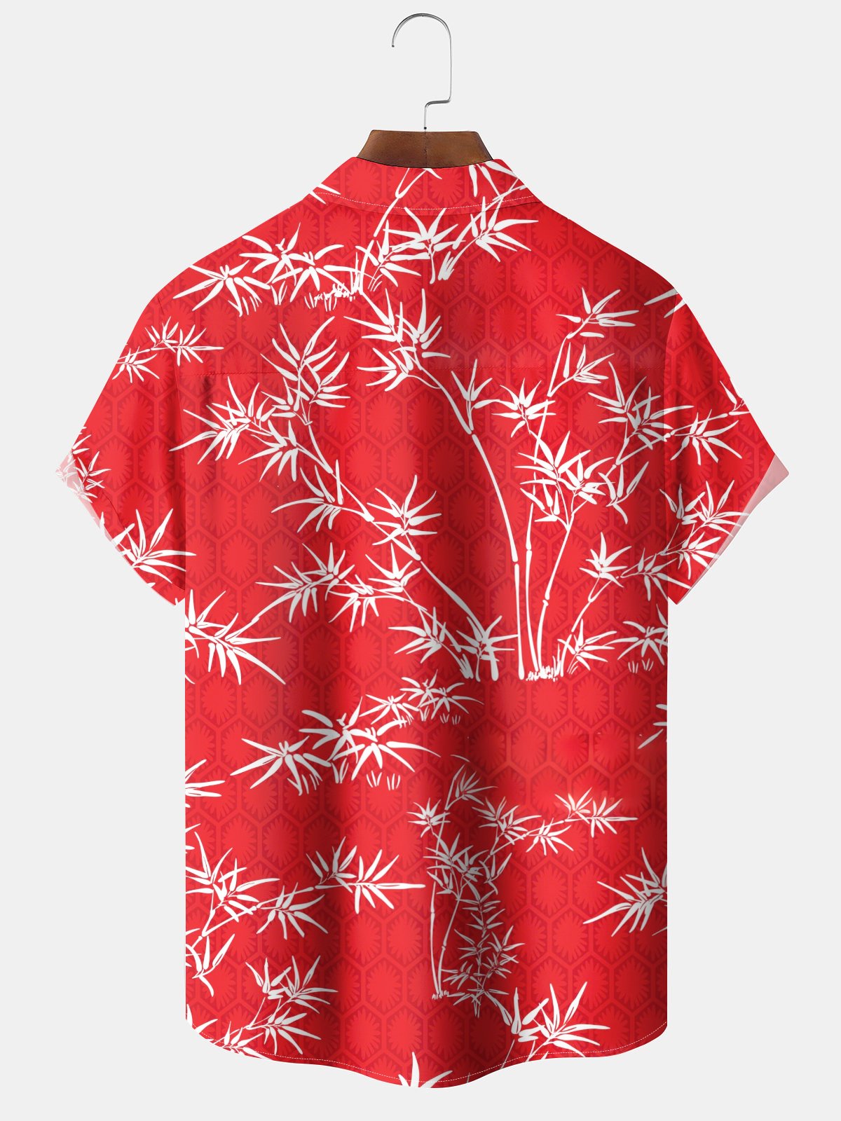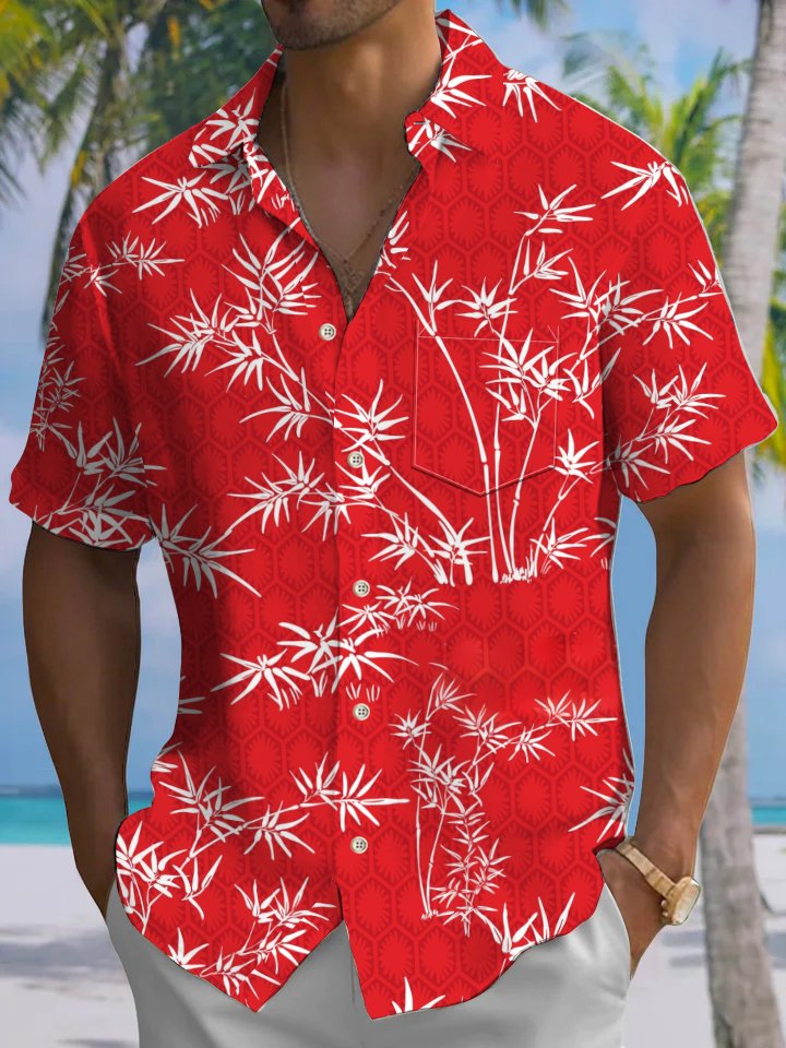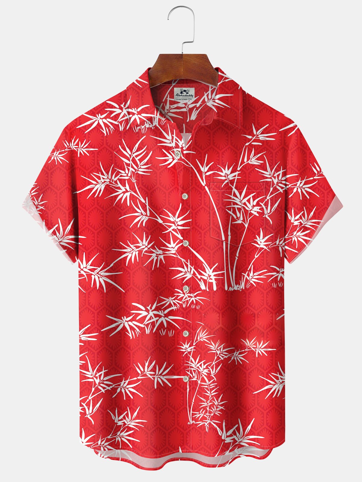 Alohadaddy® Geometric Bamboo Art Print Chest Pocket Stretch Large Size Men's Hawaiian Short Sleeve Shirt