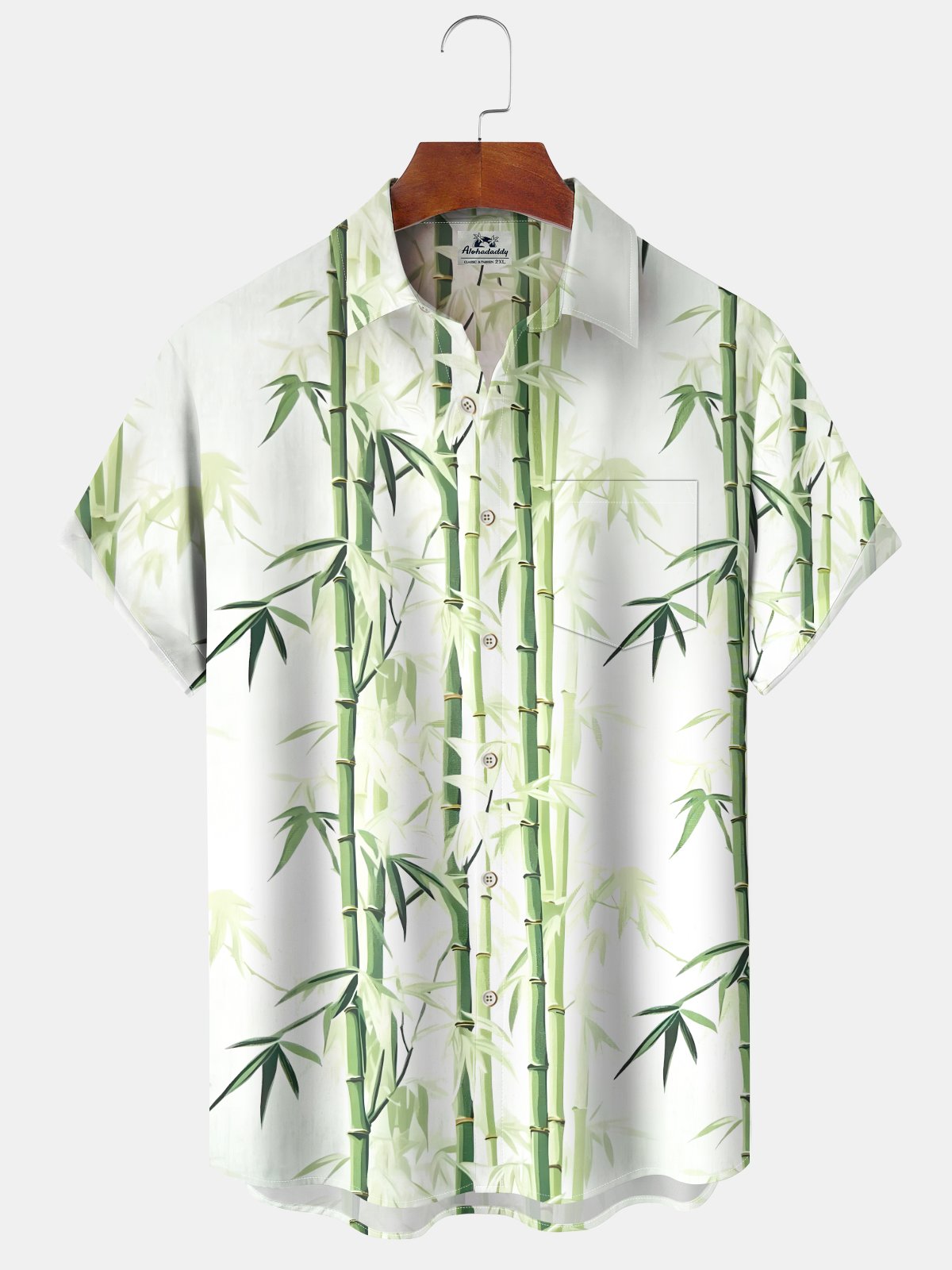 Alohadaddy® Hawaii Bamboo Art Print Pockets Stretch Men's Short Sleeve Shirt Big & Tall