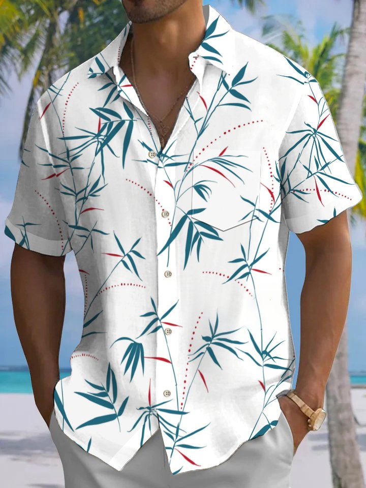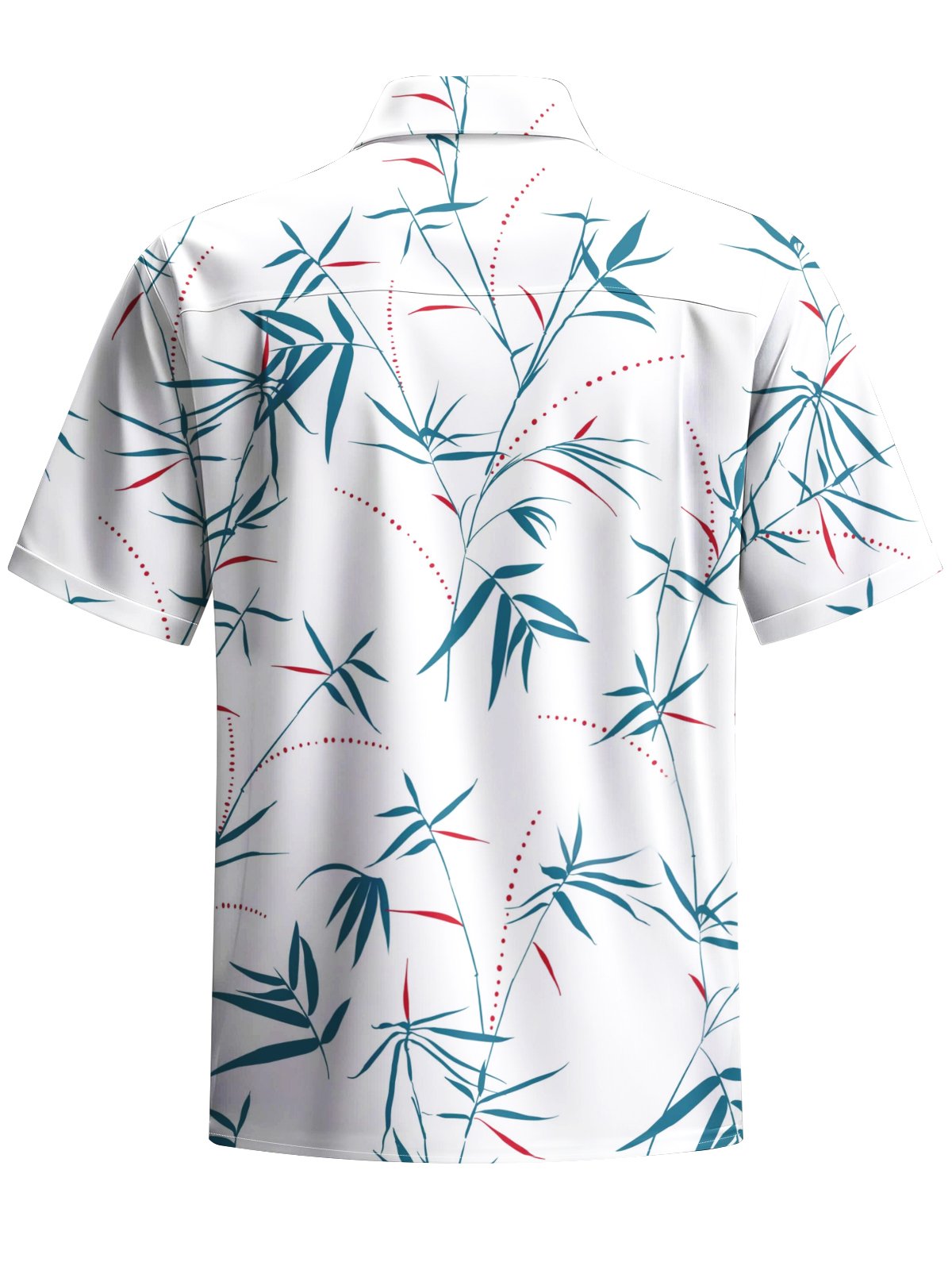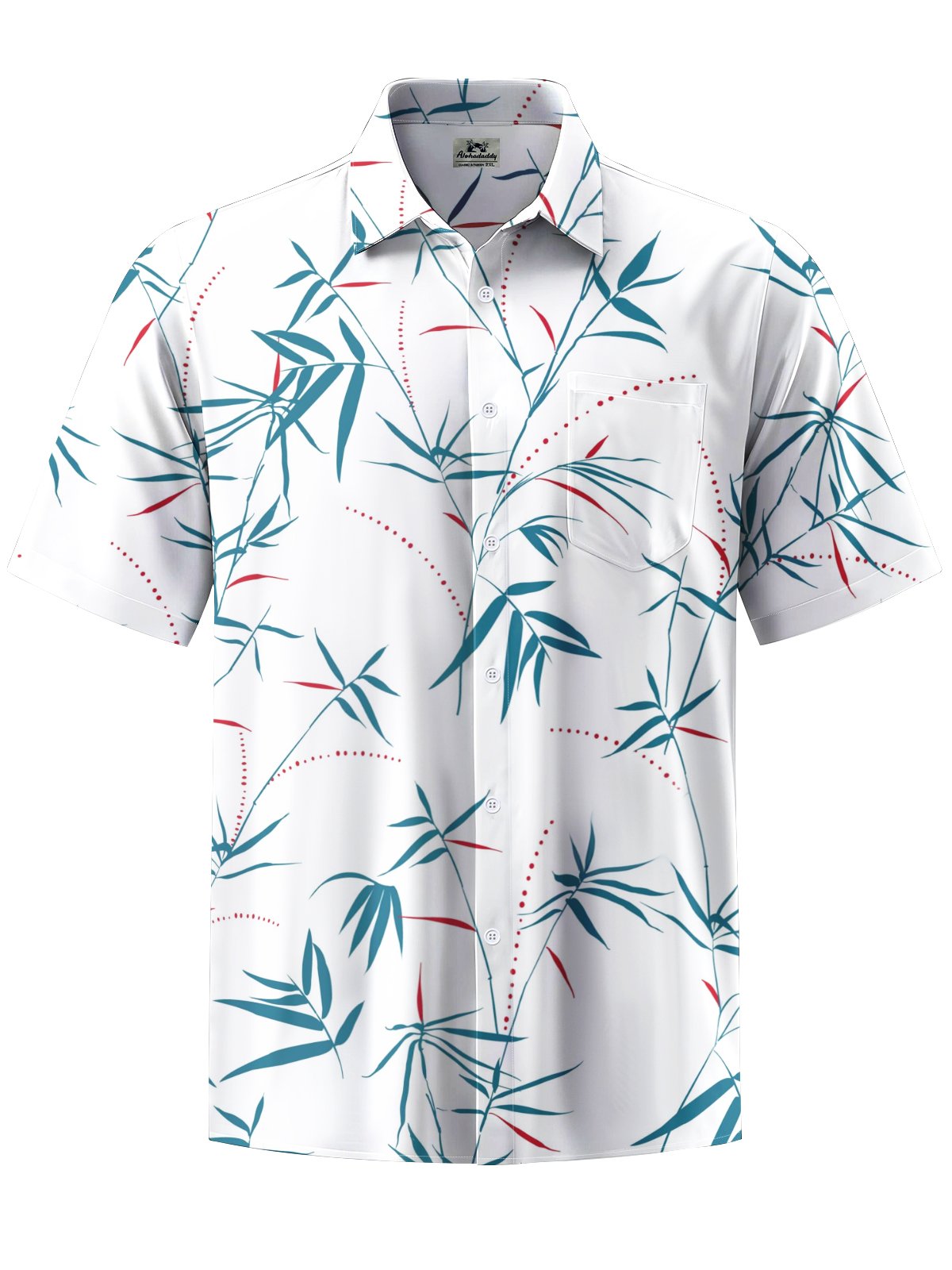 Alohadaddy® Hawaii Bamboo Leaf Print Chest Pocket Stretch Men's Short Sleeve Shirt Big & Tall