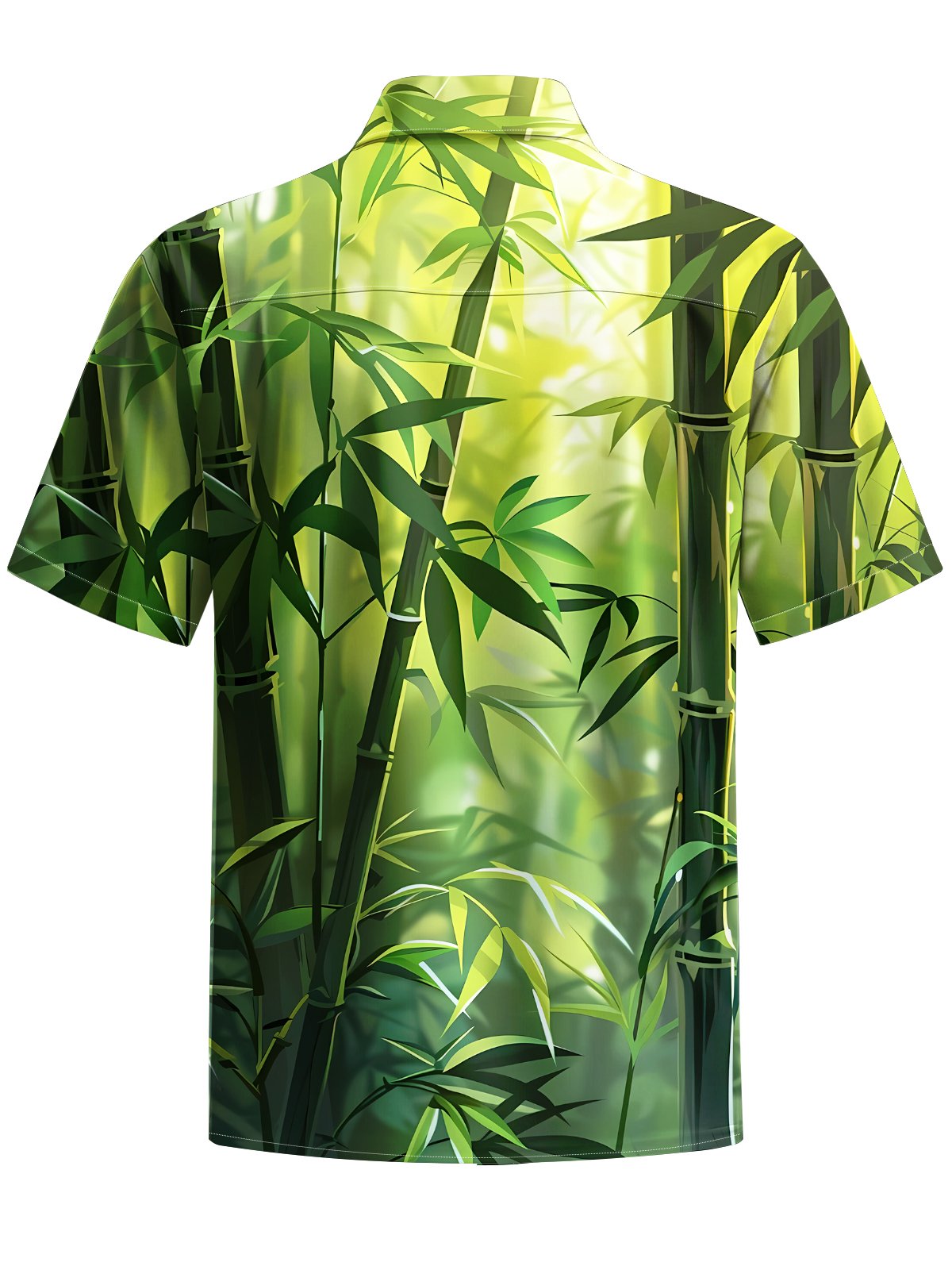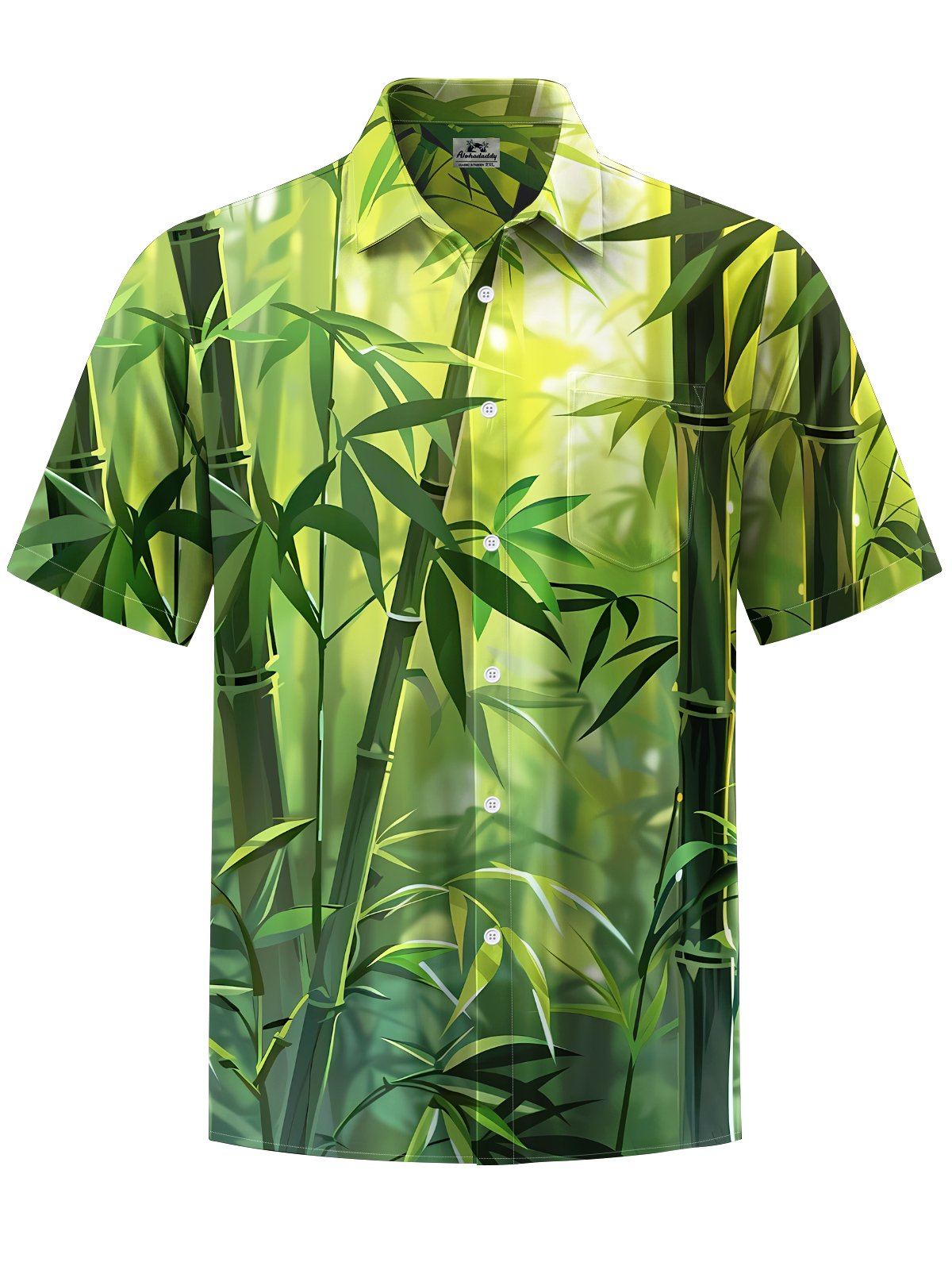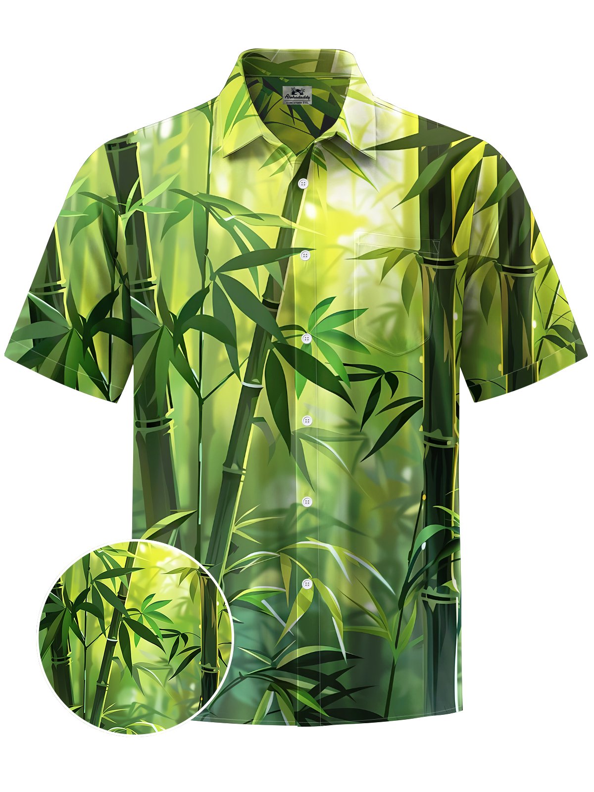 Alohadaddy® Hawaiian Bamboo Printed Pockets Stretch Large Size Men's Short Sleeve Shirt