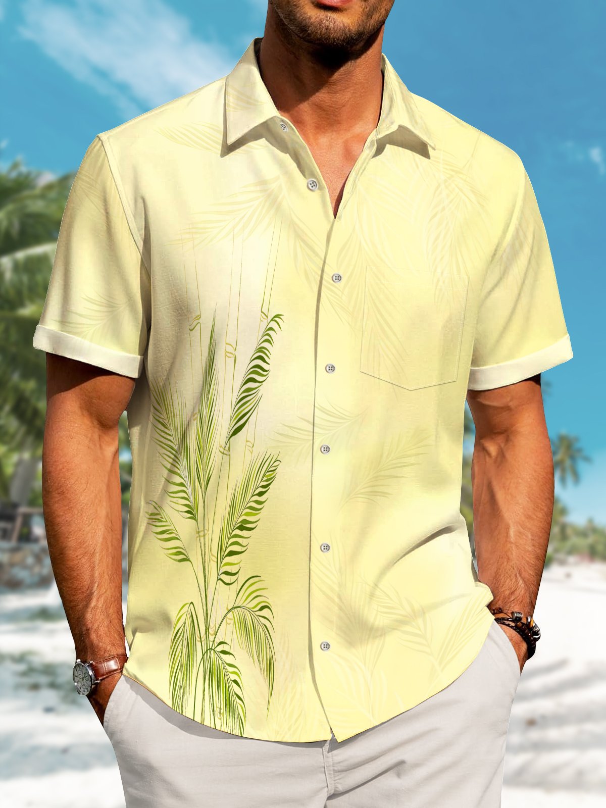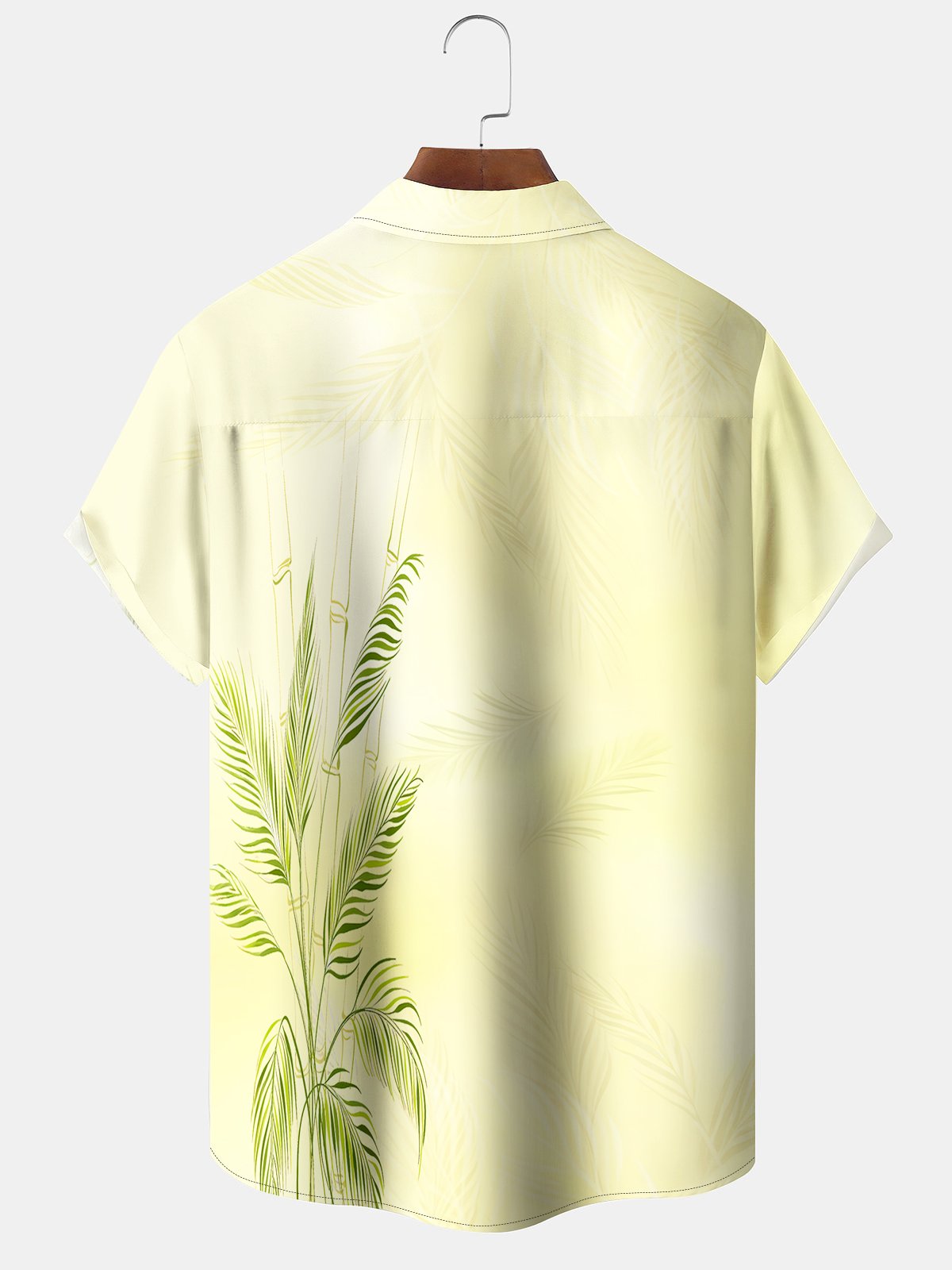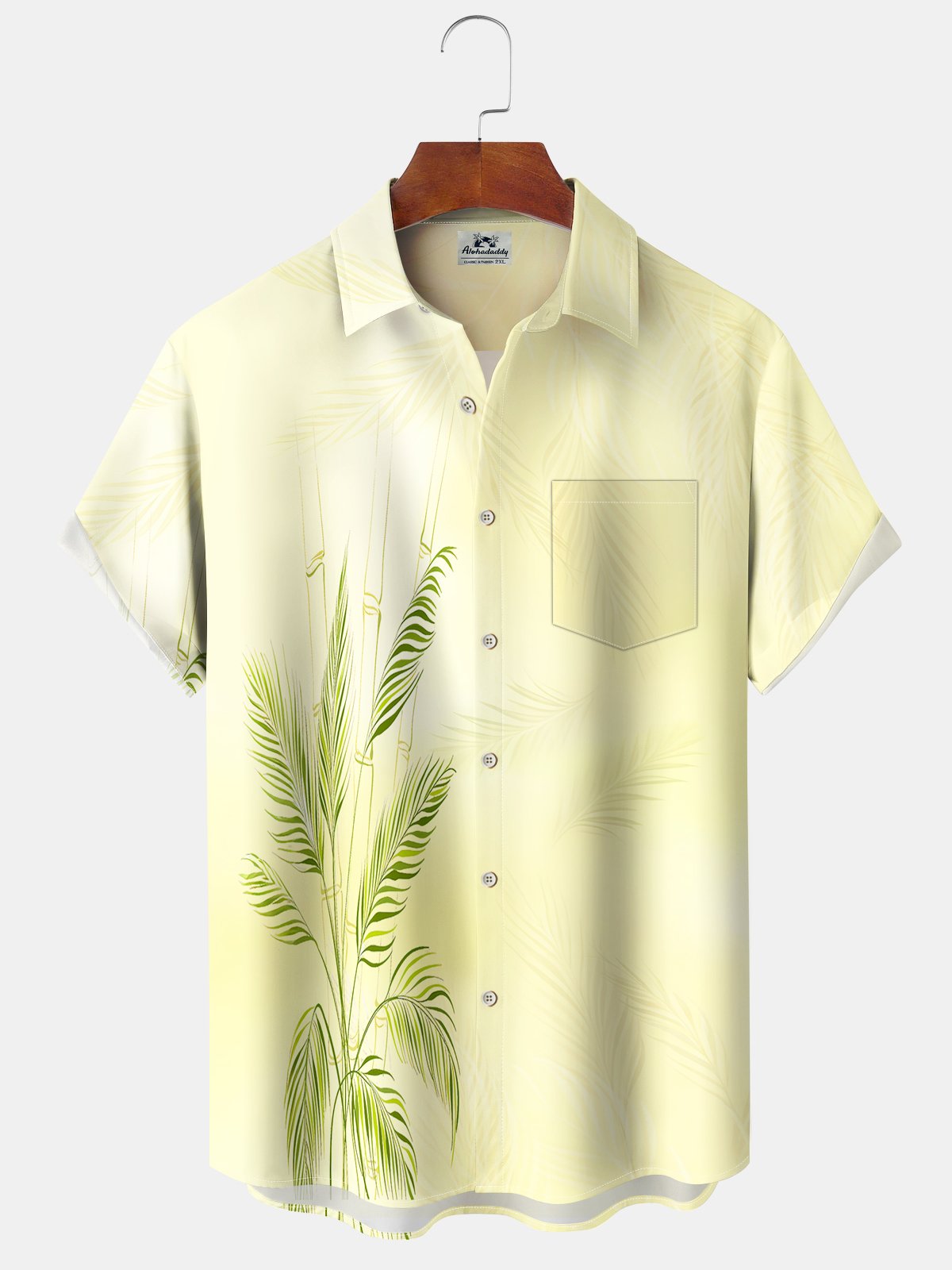 Alohadaddy Casual Hawaiian Plant Bamboo Print Art Pocket Button Elastic Oversized Shirt