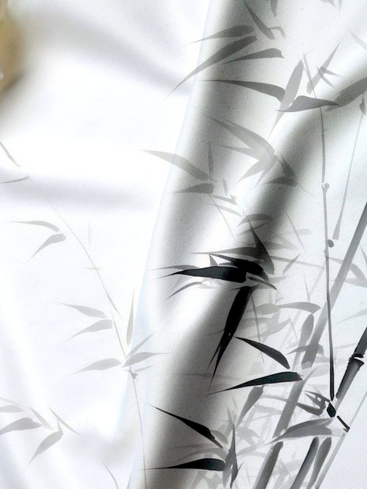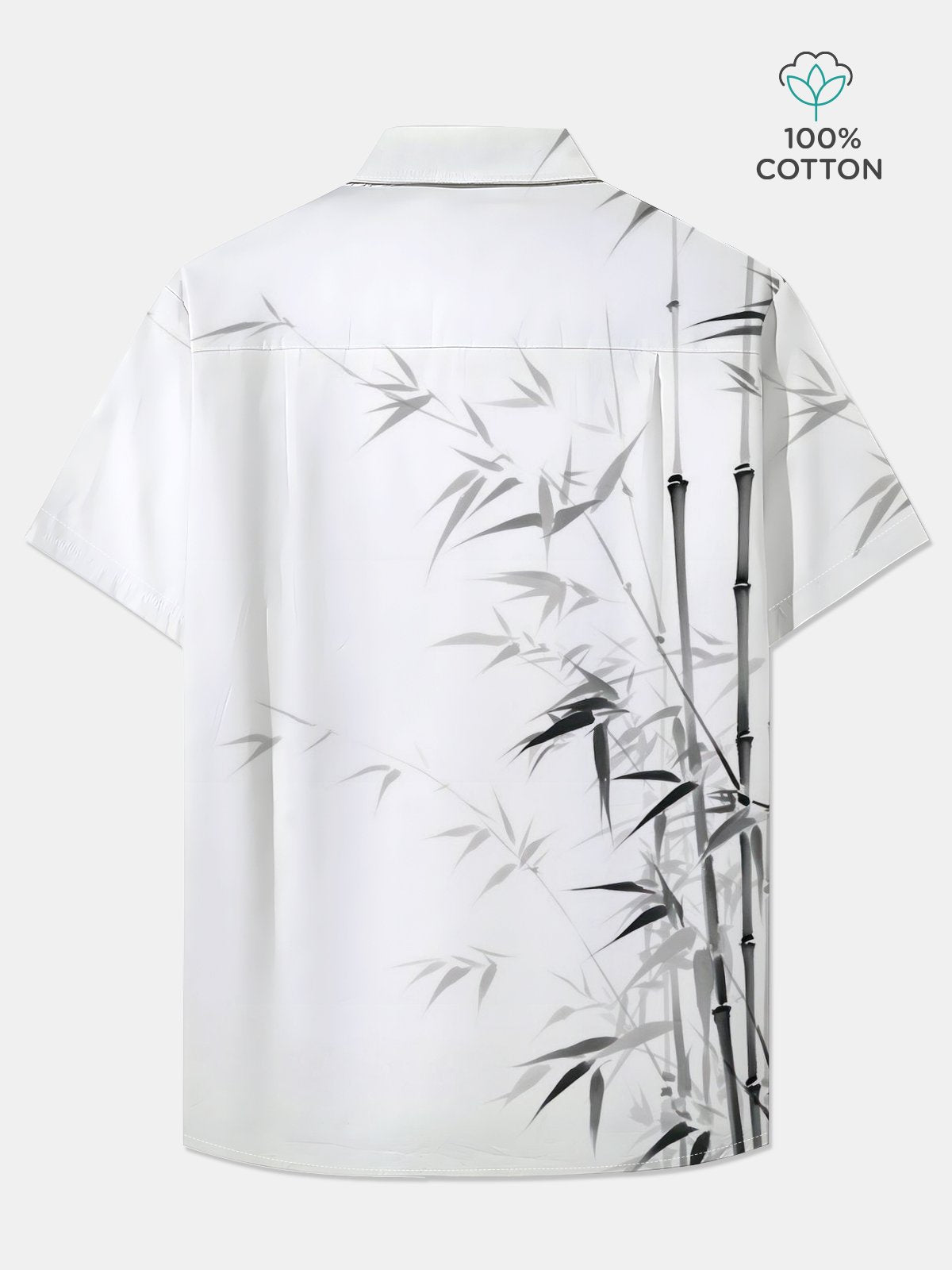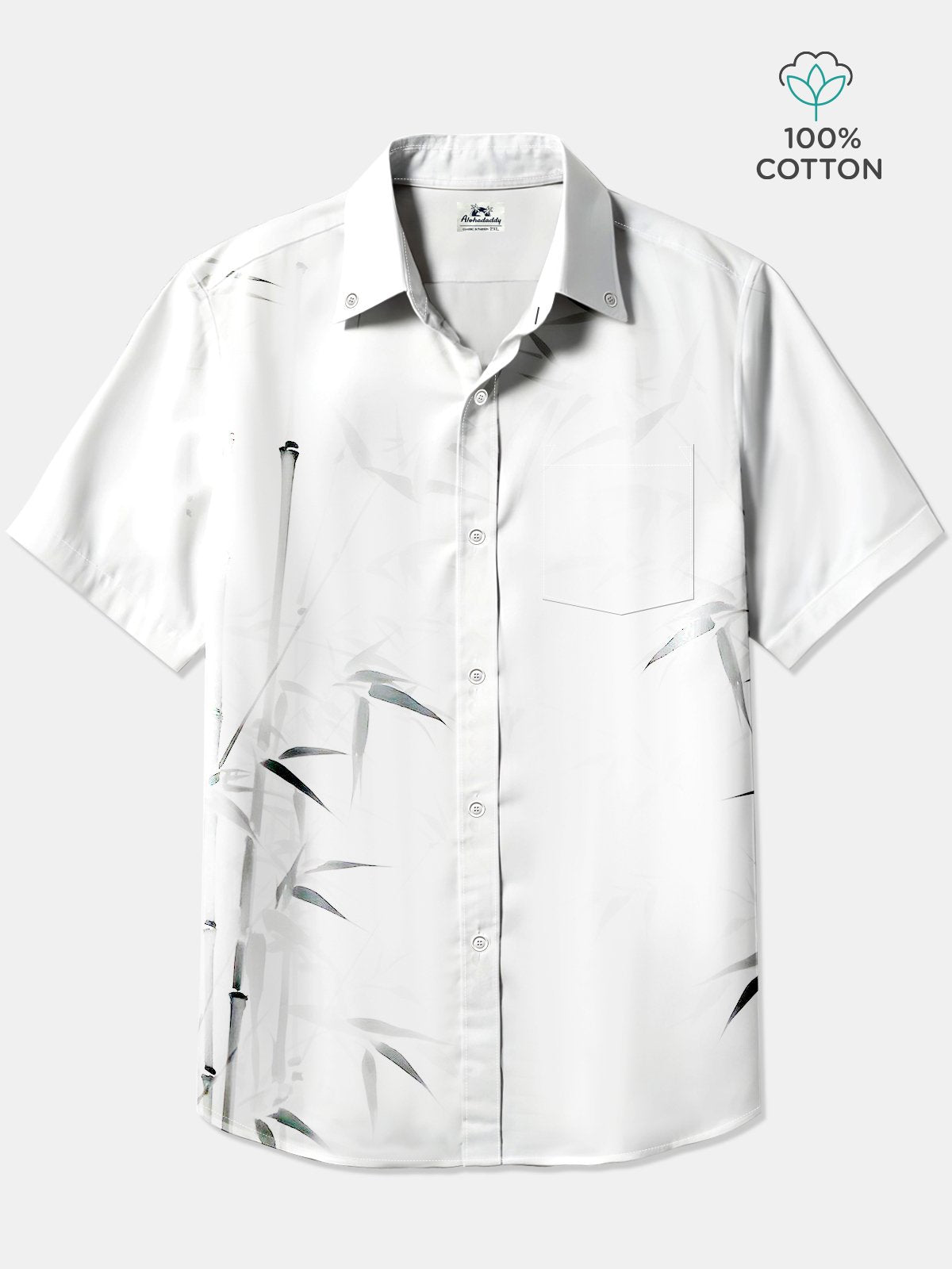 Alohadaddy Cotton Bamboo Ink Painting Art Print Moisture Wicking Chest Pocket Large Size Stretch Hawaiian Short Sleeve Shirt