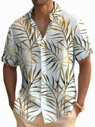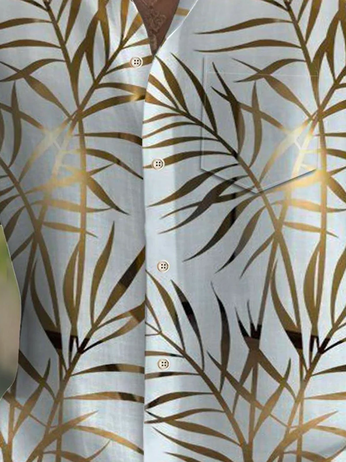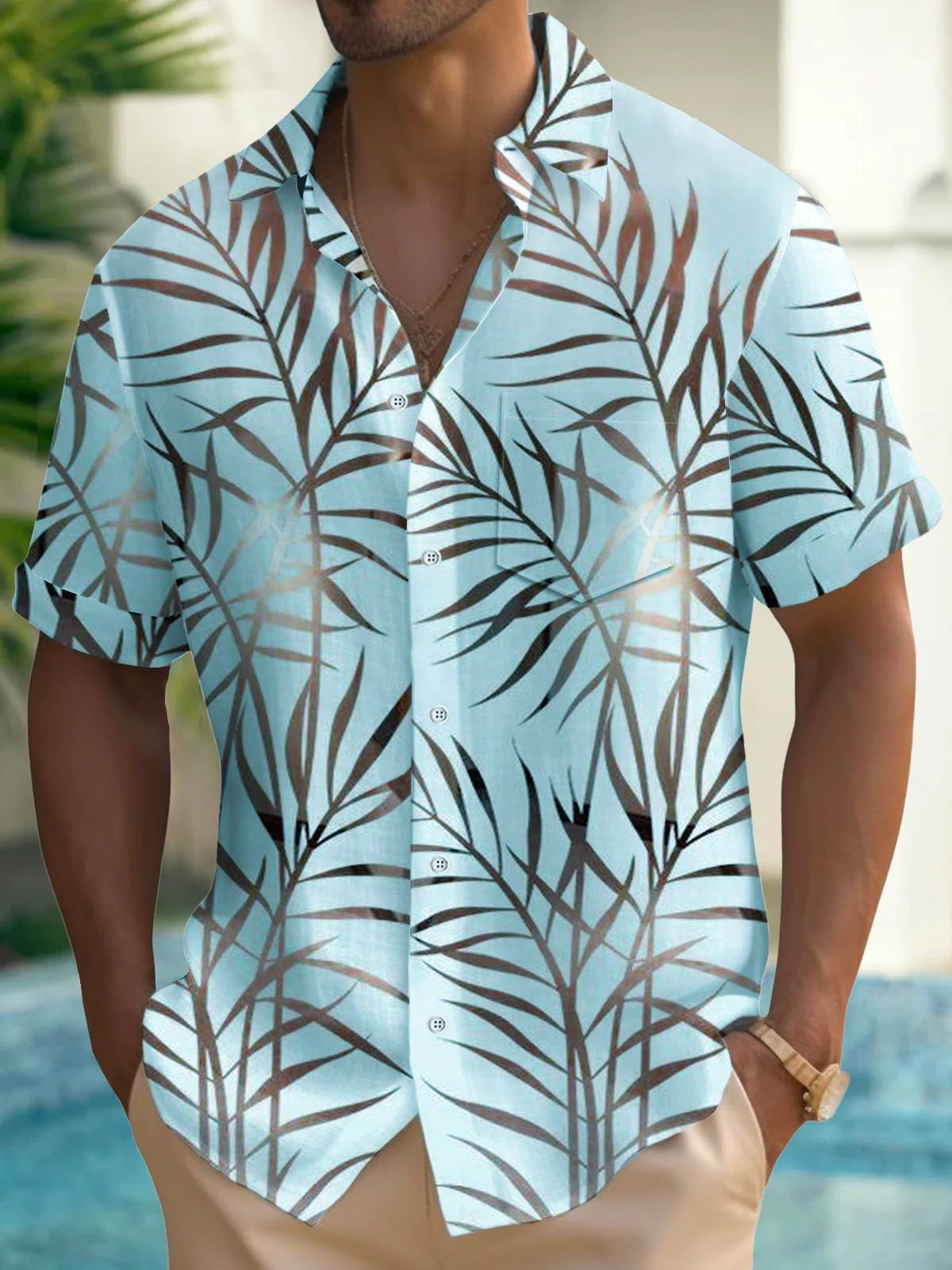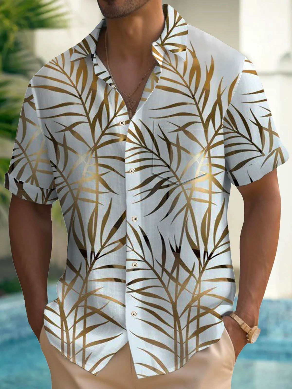 Alohadaddy Hawaiian Bamboo Print Men's Button Pocket Short Sleeve Shirt