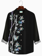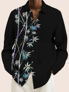 Alohadaddy Holiday Black Men's Long Sleeve Shirt Bamboo Leaf Art Vintage Pocket Camping Shirt Big Tall