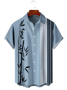 Alohadaddy Lightblue Bamboo Printing Casual Cotton-Blend Plus Size Shirts