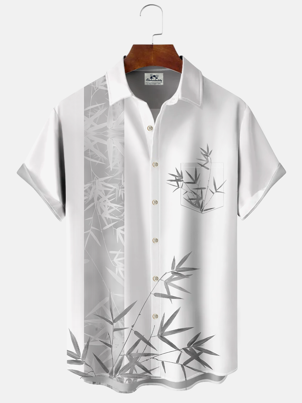 Alohadaddy Plant Bamboo Button Pocket Casual Short Sleeve Shirt