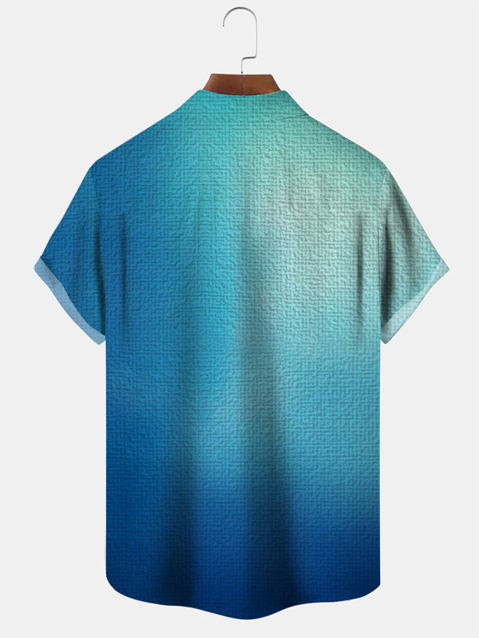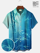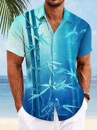 Alohadaddy Plant Bamboo Gradient Color Men Pocket Button Casual 50S Bowling Commuter Short Sleeve Shirt