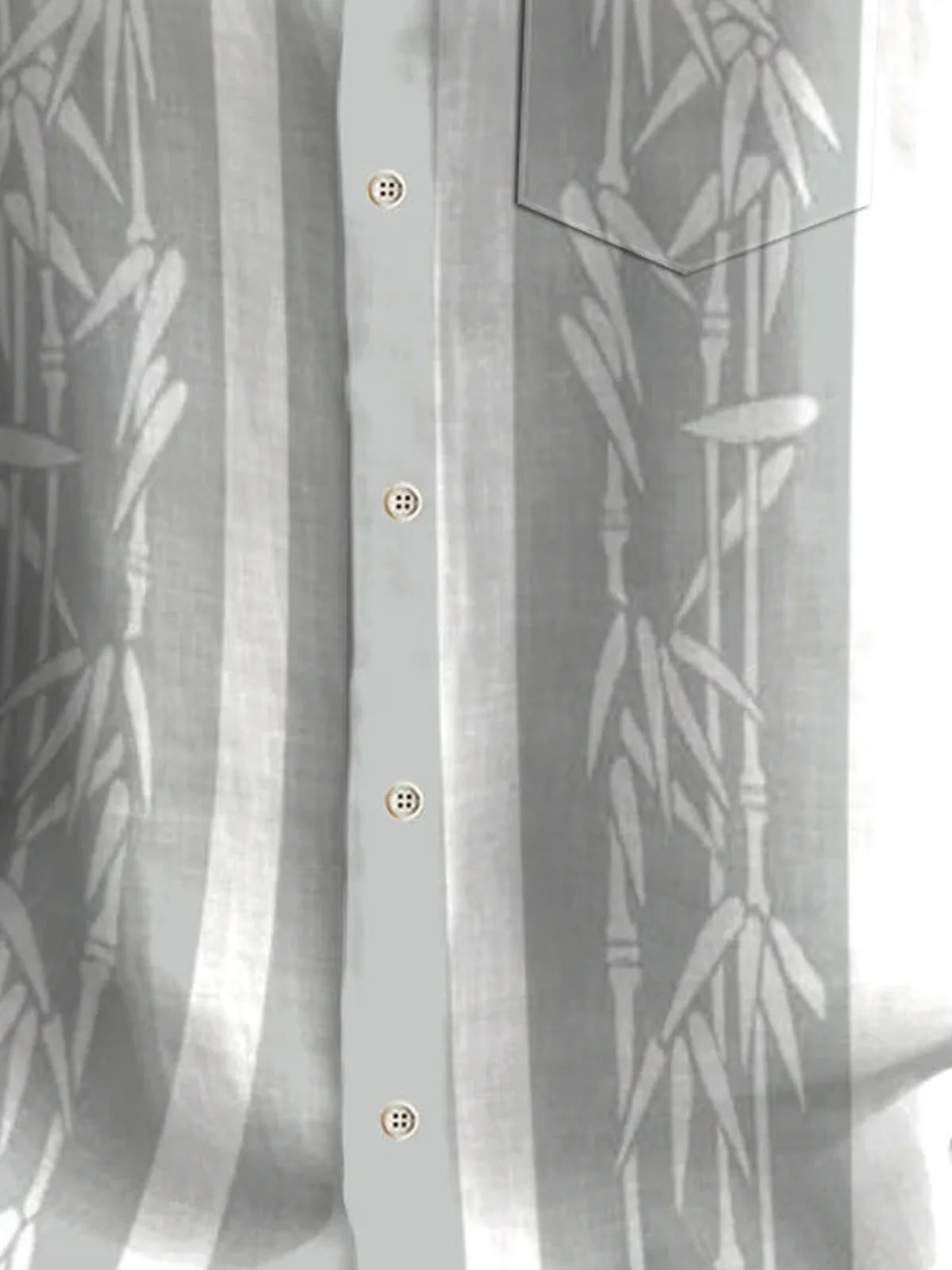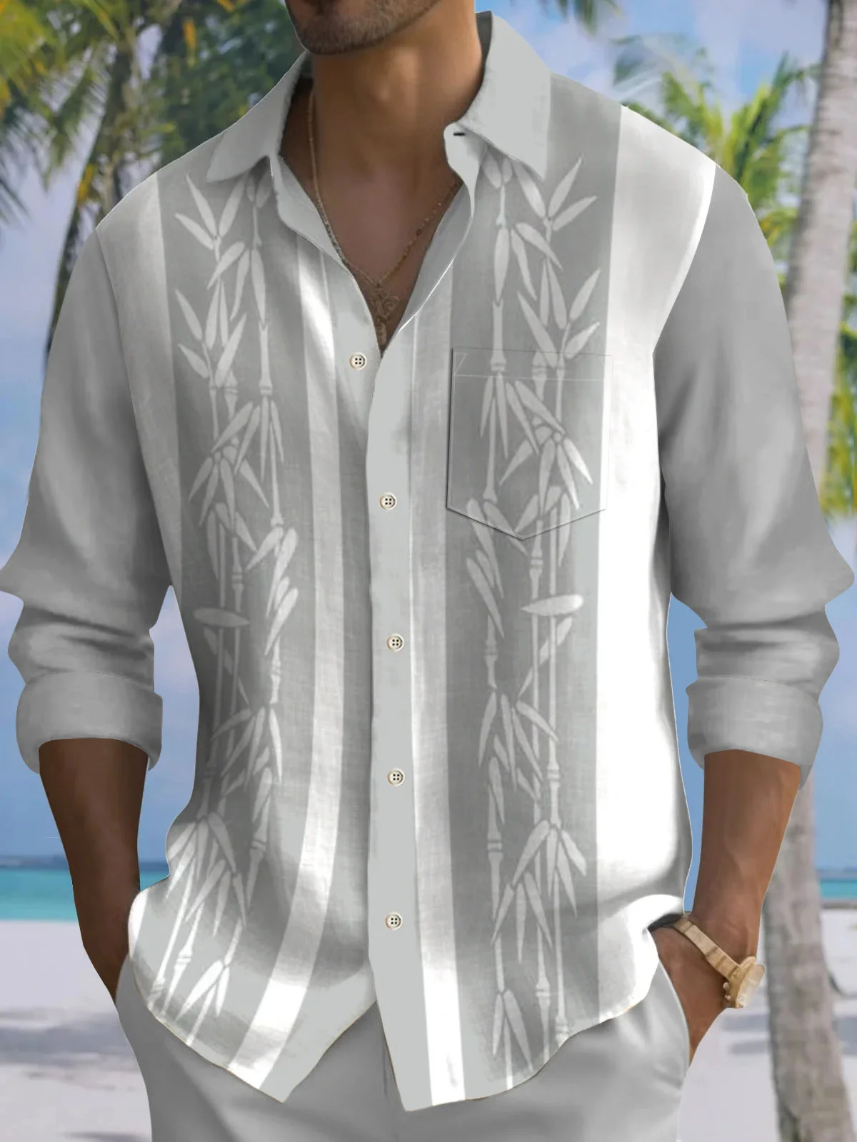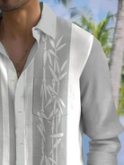 Alohadaddy Pocket Vintage Bowling Plant Bamboo Print Beach Men's Hawaiian Big And Tall Long Sleeve Shirt