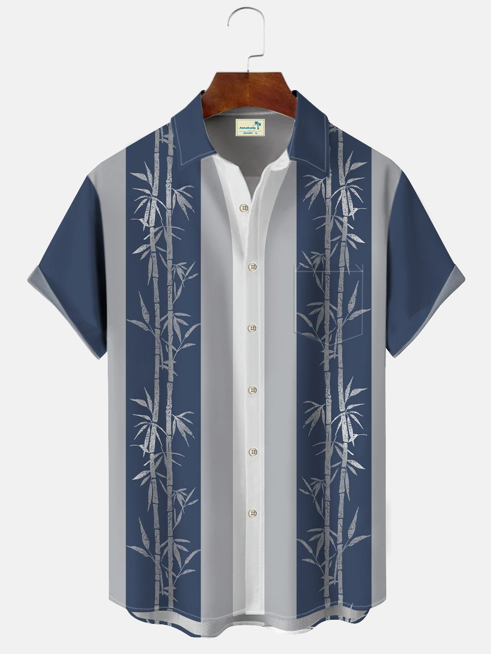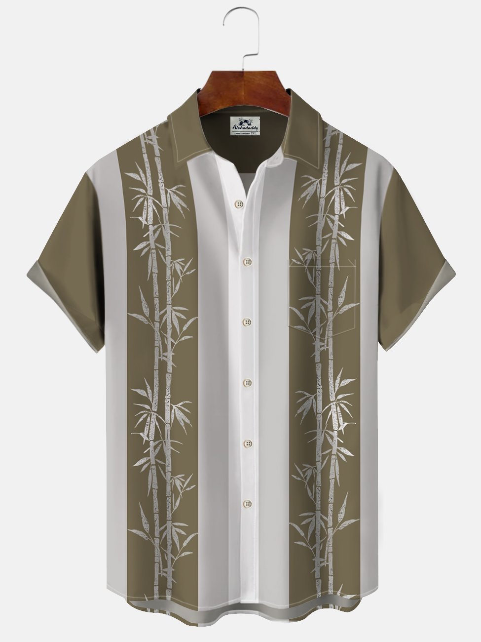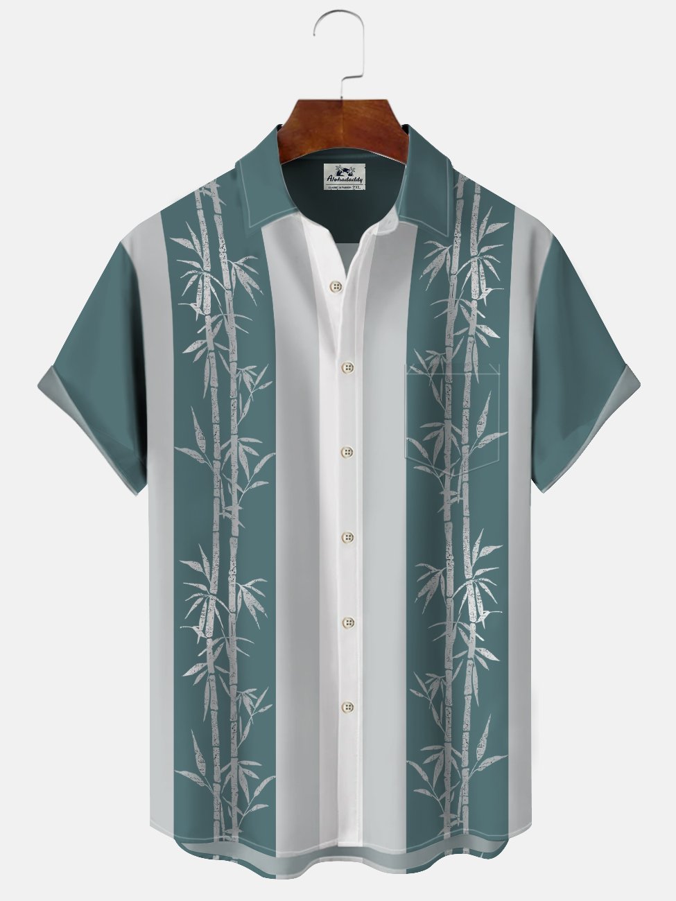 Alohadaddy Summer Plant Bamboo Men's 50S Bowling Commuter Button Pocket Polyester Short Sleeve Shirt
