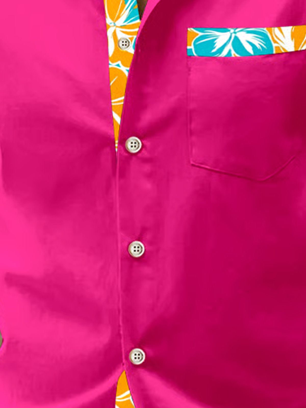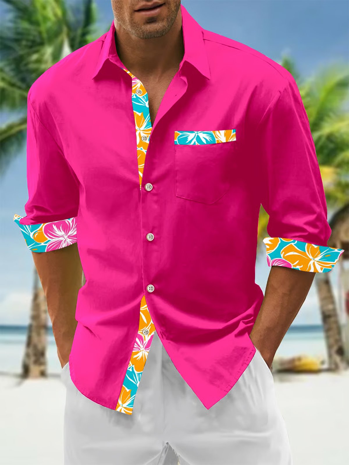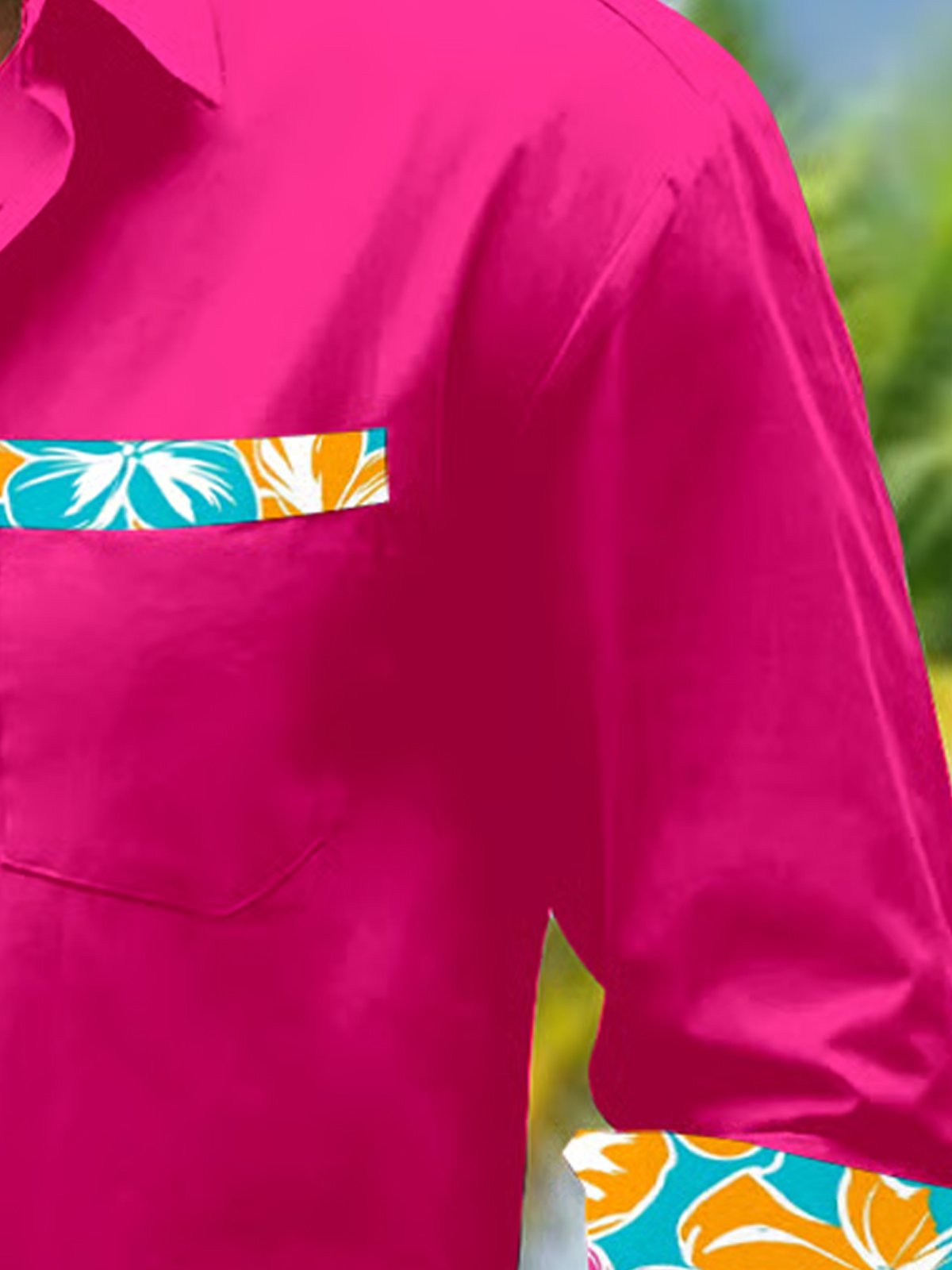 Alohadaddy® Basic Solid Floral Stitching Long Sleeve Pocket Shirt