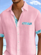 Alohadaddy® Basic Solid Hawaiian Men's Plaid Colorblock Shirt