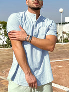 Alohadaddy® Basic Solid Stand Collar Button Henley Cotton Shirt