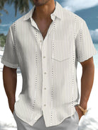 Alohadaddy® Casual Stripe Printed Art Pocket Stretch Men's Short Sleeve Shirt Big & Tall