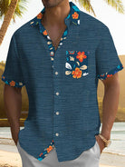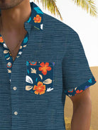 Alohadaddy® Casual Textured Floral Contrast Print Art Chest Pocket Men's Short Sleeve Shirt Big & Tall