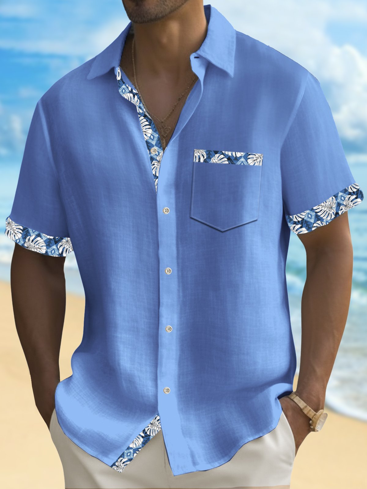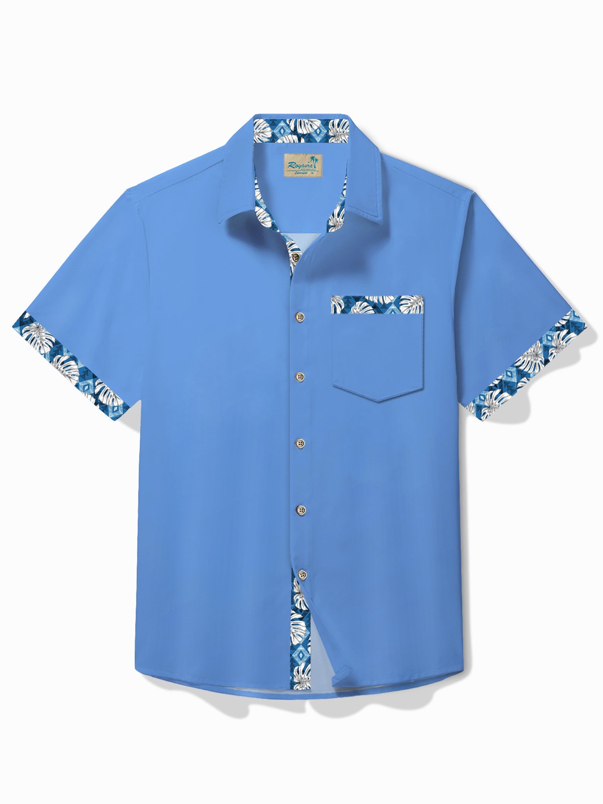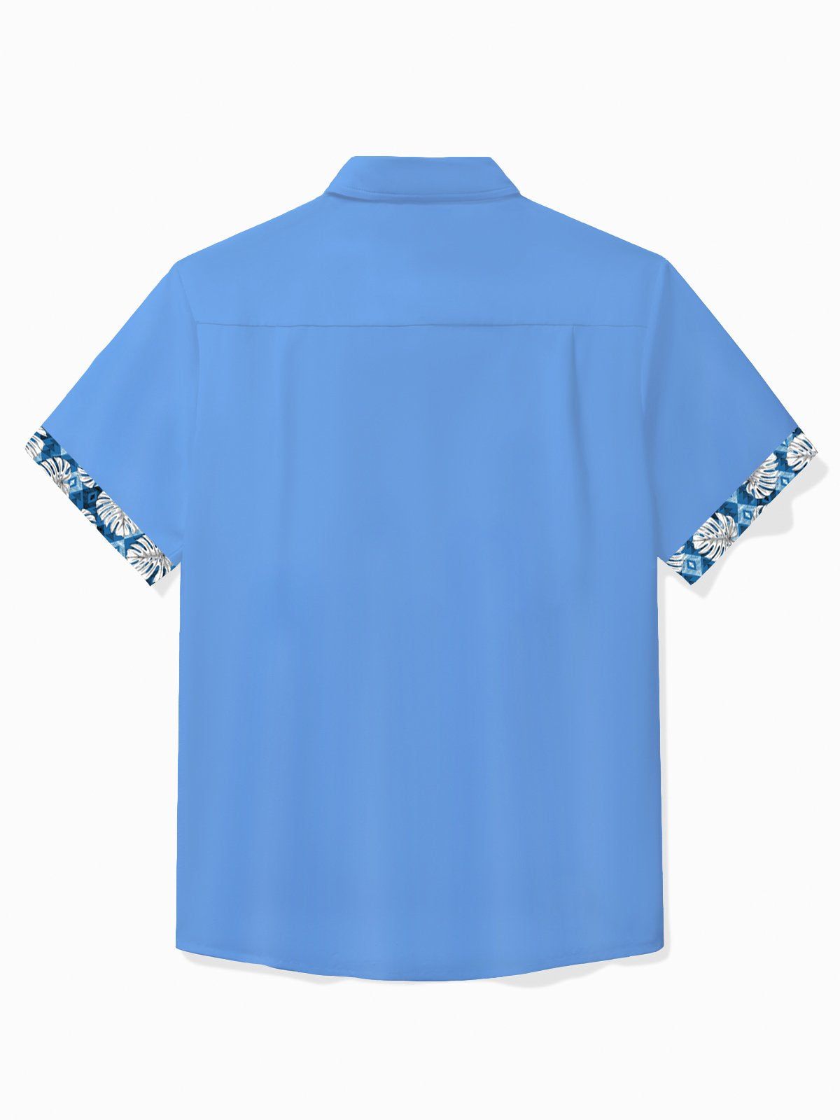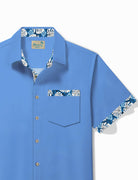 Alohadaddy Basic Blue Men's Hawaiian Shirt Vegetarian Patchwork Stretch Easy Care Pocket Camping Shirt