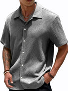 Alohadaddy Basic Casual Seersucker Men's Button Pocket Short Sleeve Shirt Big & Tall