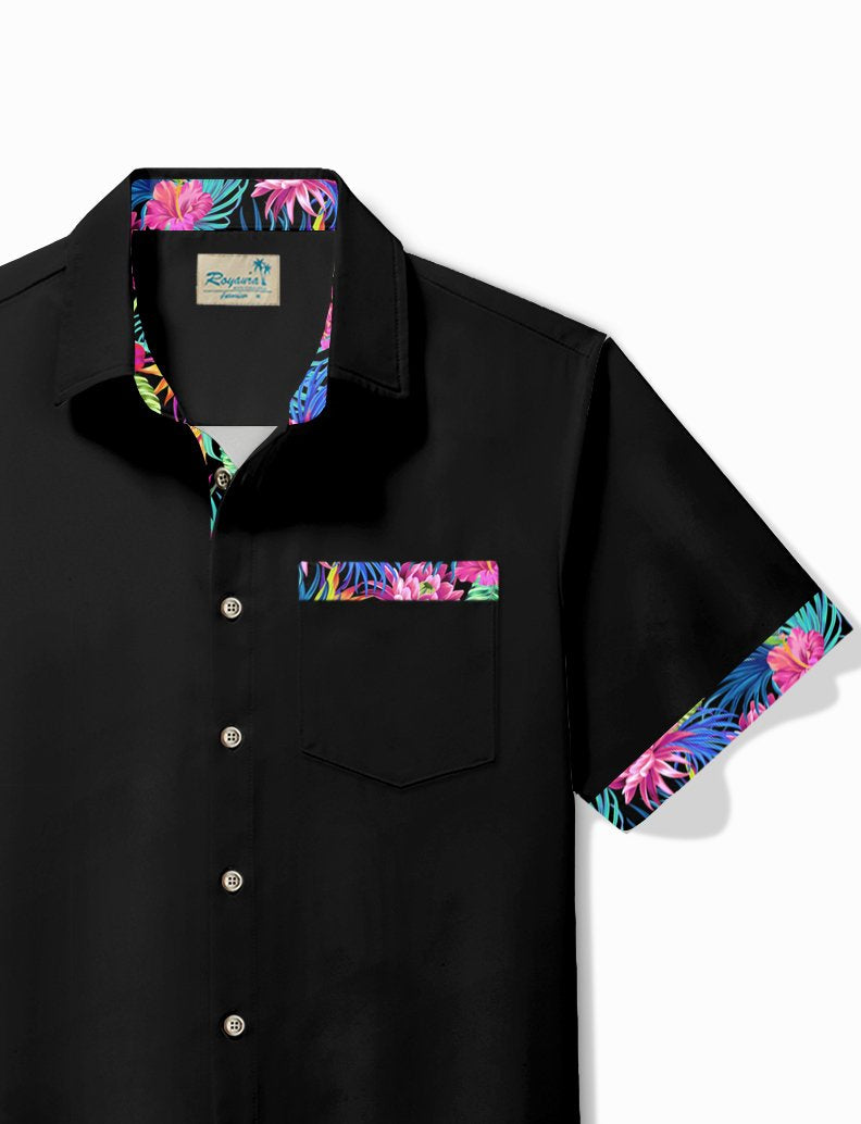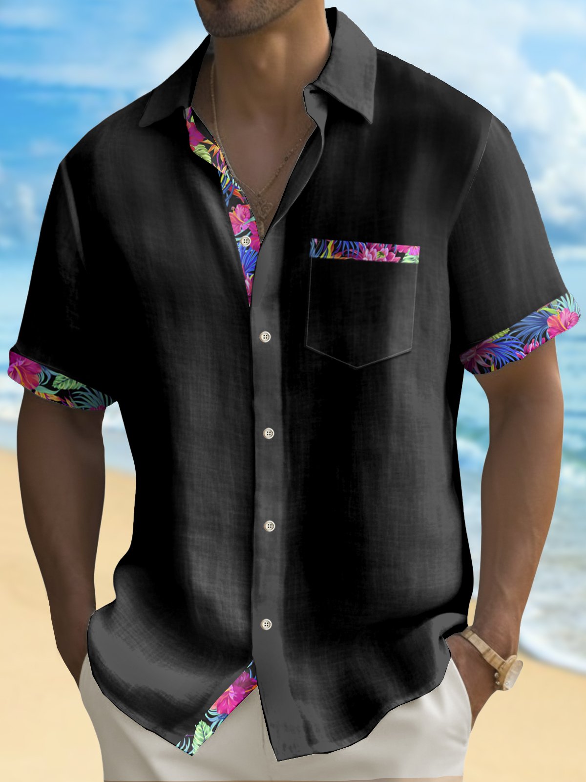 Alohadaddy Basic Floral Patchwork Men's Hawaiian Shirt Stretch Easy Care Pocket Camping Shirt