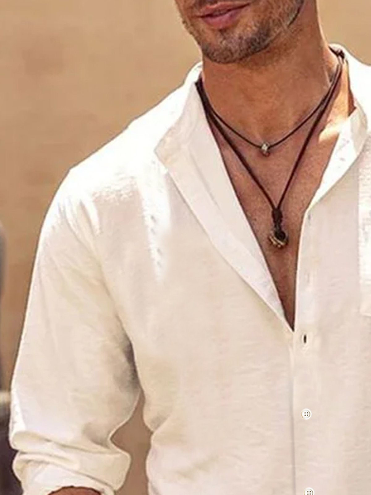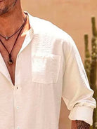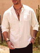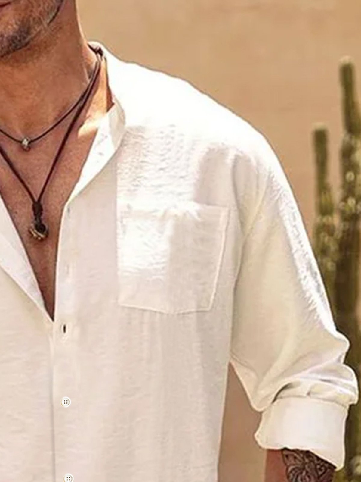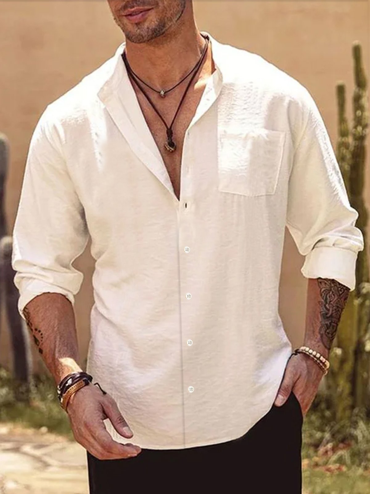 Alohadaddy Basic Plain Printed Men's Button Pocket Long Sleeve Shirt