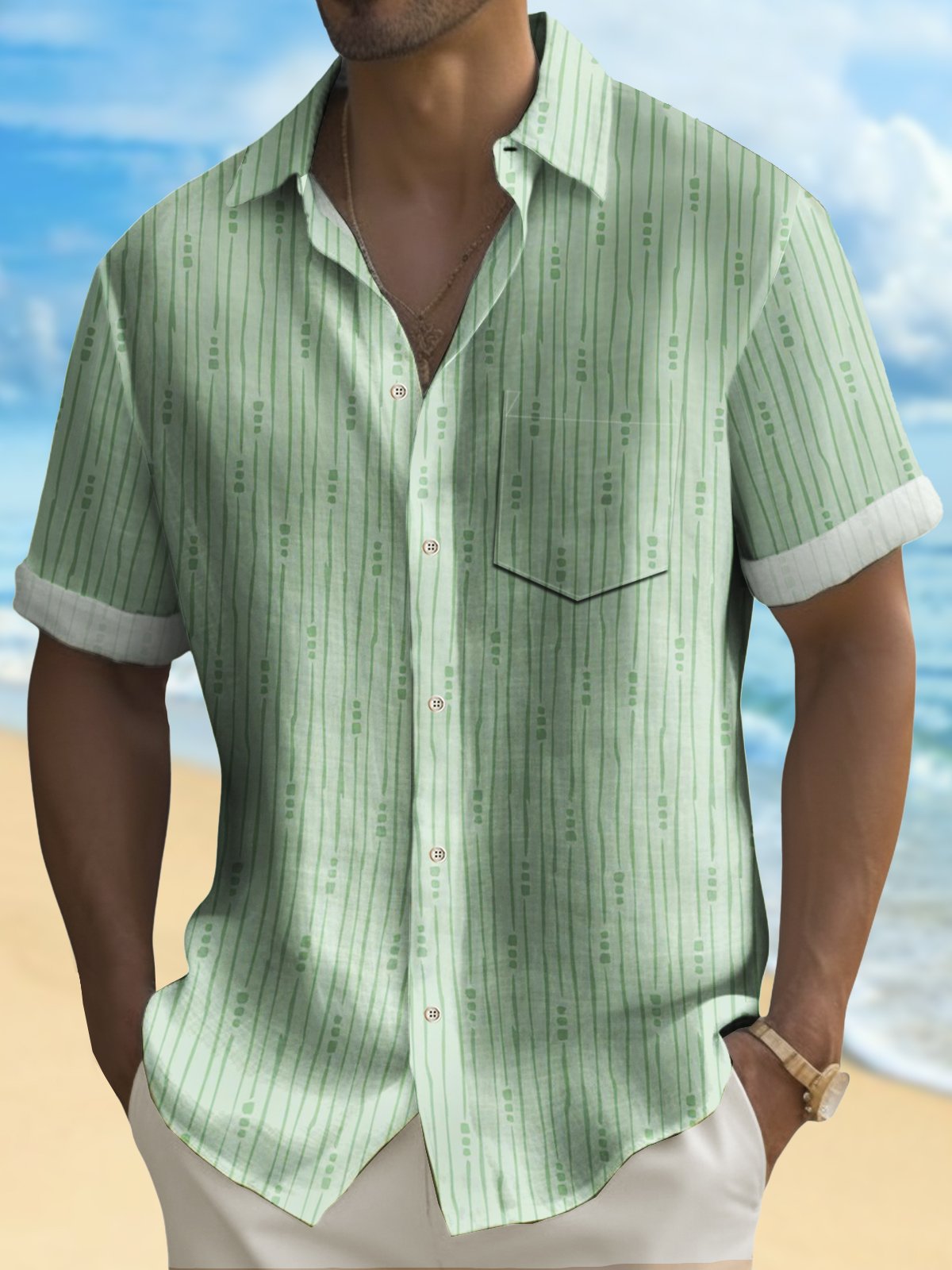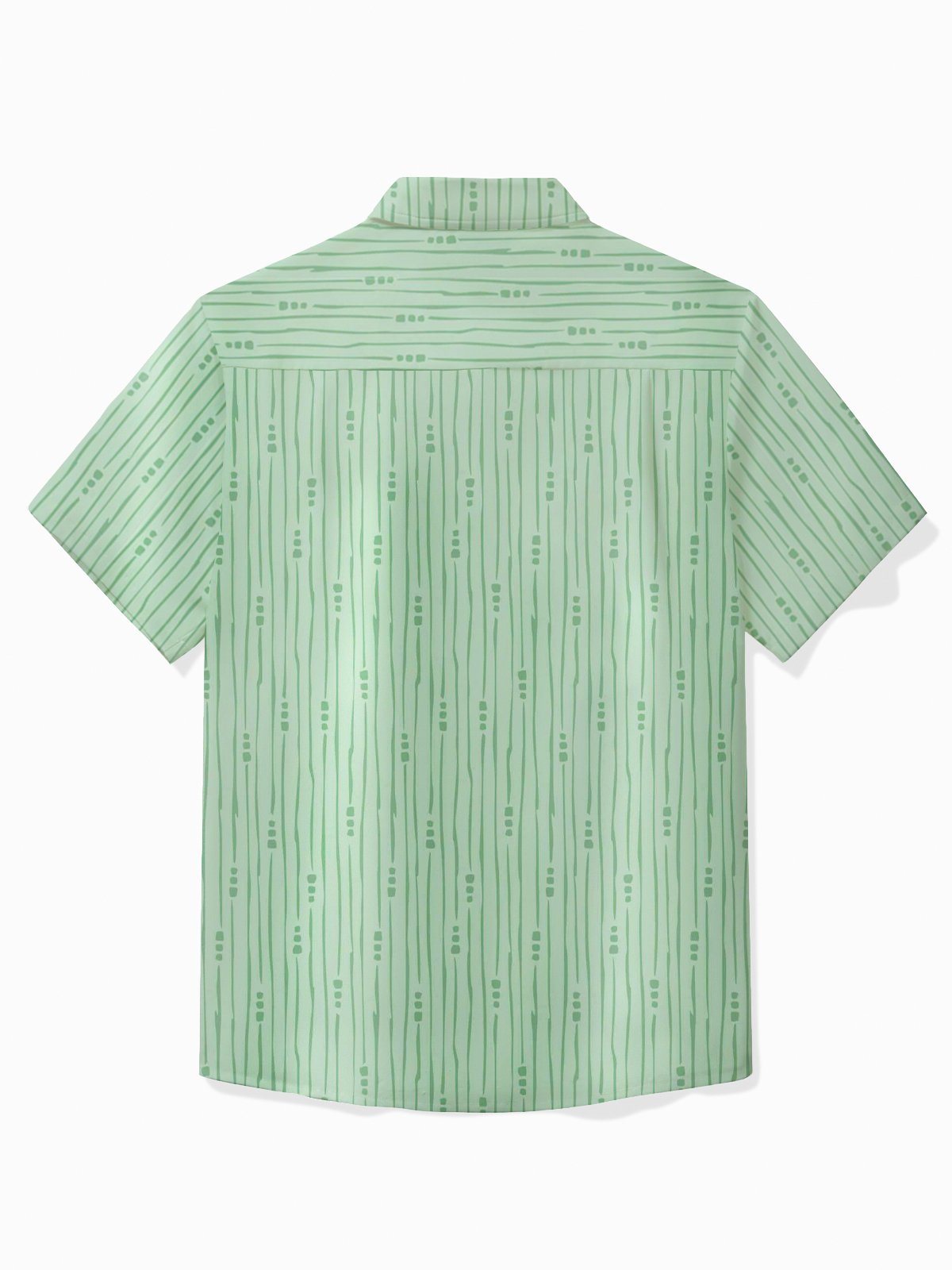 Alohadaddy Basic Striped Men's Hawaiian Shirt Stretch Easy Care Pocket Camping Shirt Big Tall