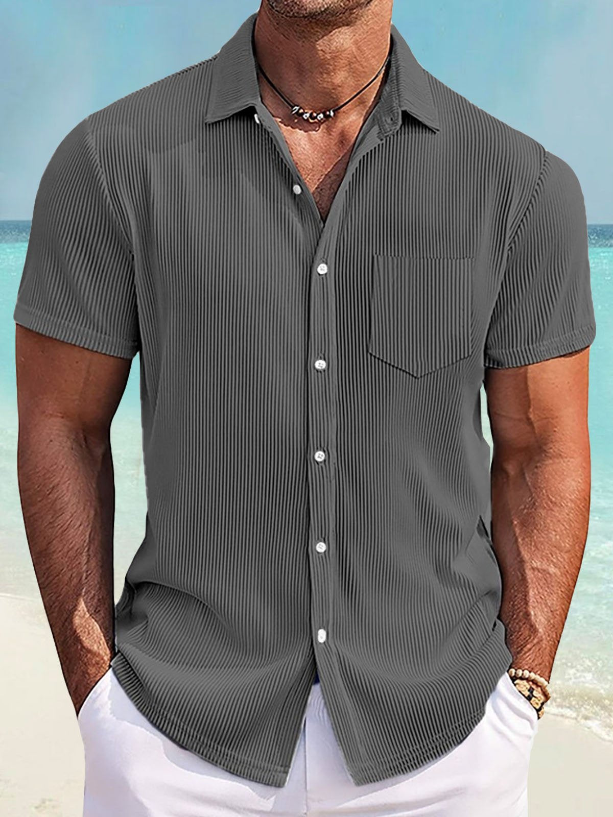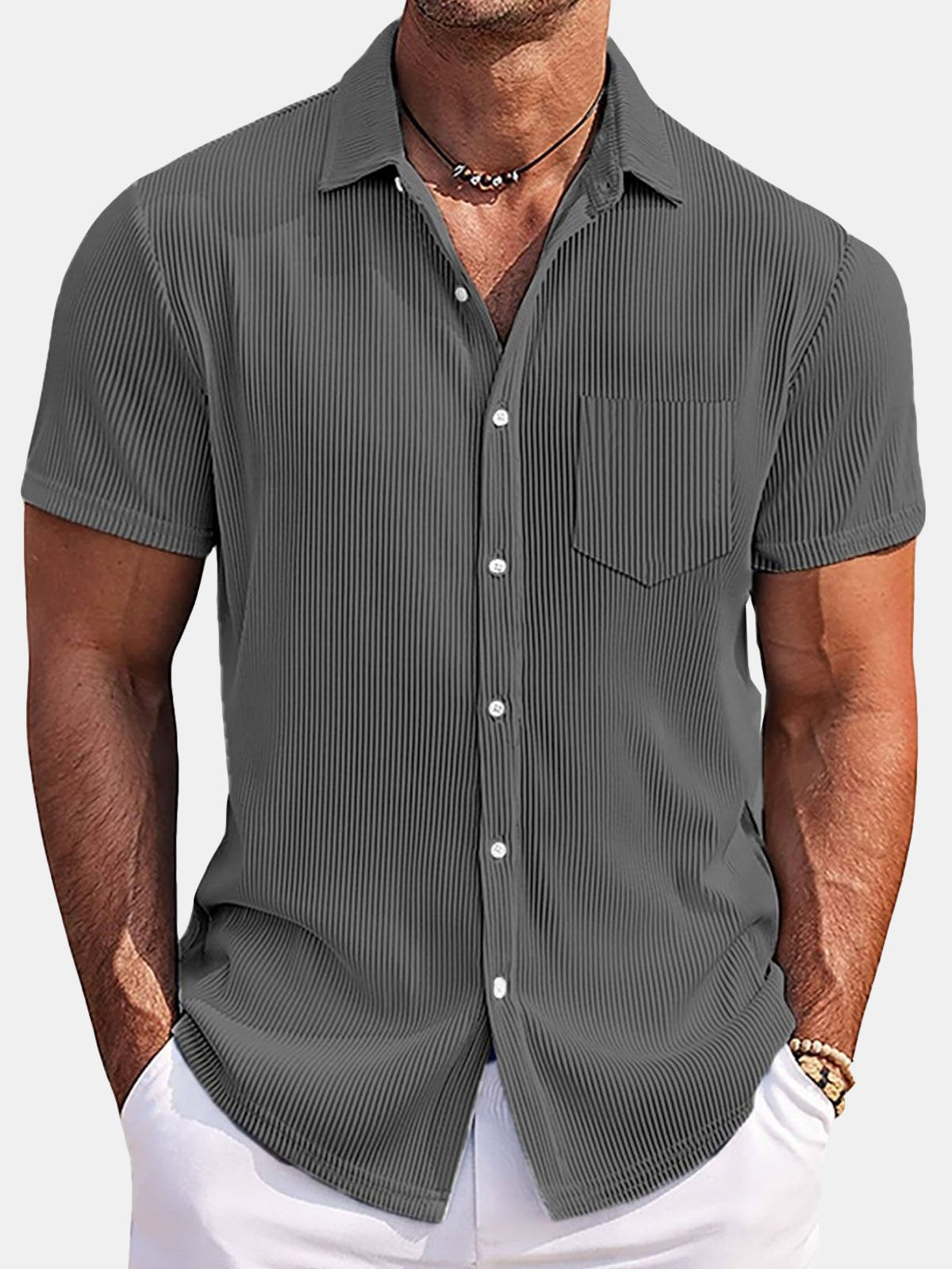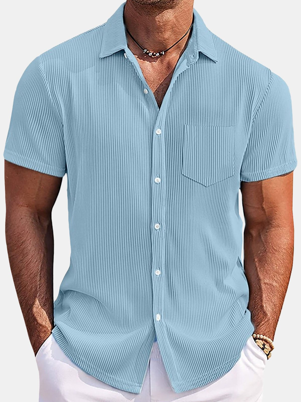 Alohadaddy Basics Pit Stripe Men's Button Pocket Short Sleeve Shirt Big & Tall