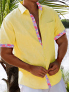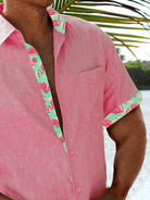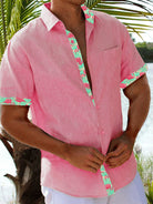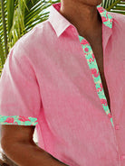 Alohadaddy Beach Holiday Flamingo Pink Men's Shirt Pocket Basics Camp Shirt Big Tall