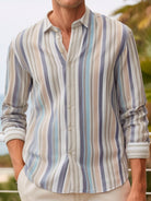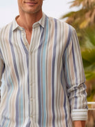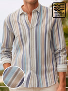 Alohadaddy Beach Vacation Khaki Men's Long Sleeve Striped Shirts Wrinkle Free Seersucker Stretch Plus Size Aloha Camp Pocket Button-Down Shirts