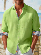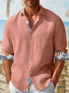 Alohadaddy Beach Vacation Men's Long Sleeve Casual Shirts Breathable Comfortable Textured Camp Button Shirts Big Tall