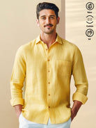 Alohadaddy Beach Vacation Yellow Men's Long Sleeve Shirts Vintage Textured Stretch Aloha Camp Pocket Basics Shirts