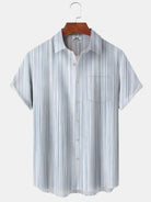 Alohadaddy Casual Collection Stripes Printed Art Pocket Cardigan Buttons Polyester Stretch Short Sleeve Shirt