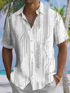 Alohadaddy Casual Daily Stripes Geometric Print Art Button Cardigan Pockets Breathable Soft Long Large Size Short Sleeve Shirt