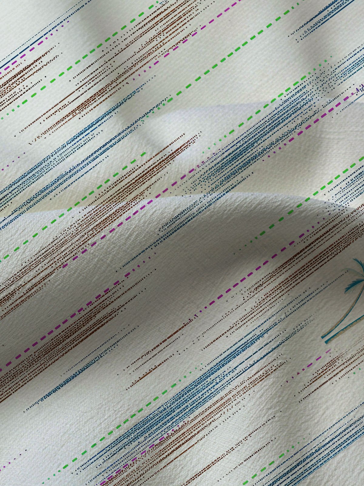 Alohadaddy Casual Daily Stripes Palm Trees Print Art Button Cardigan Pockets Breathable Soft Long Large Size Short Sleeve Shirt