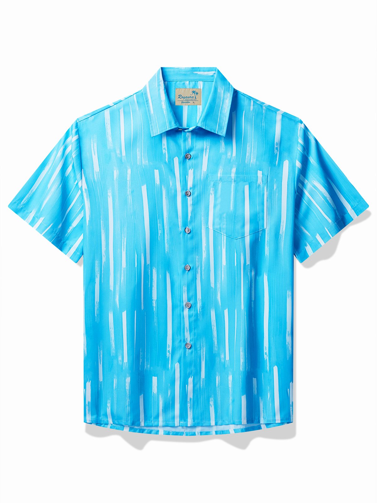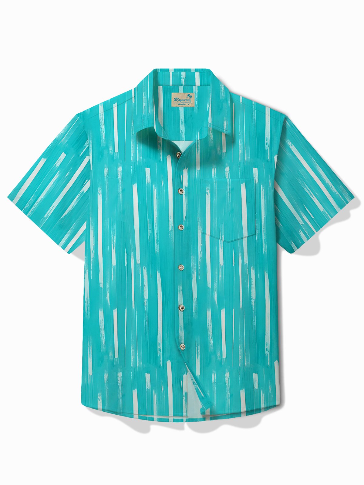 Alohadaddy Geometric Art Men's Hawaiian Shirt Abstract Stripe Care Pocket Camping Shirt Big Tall