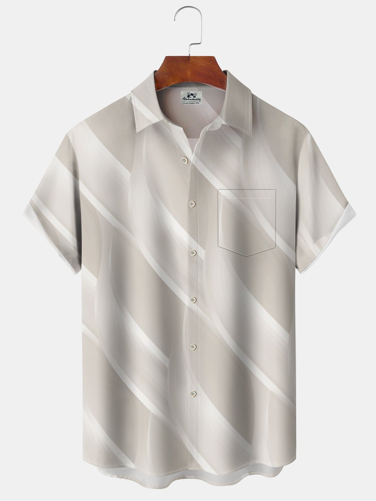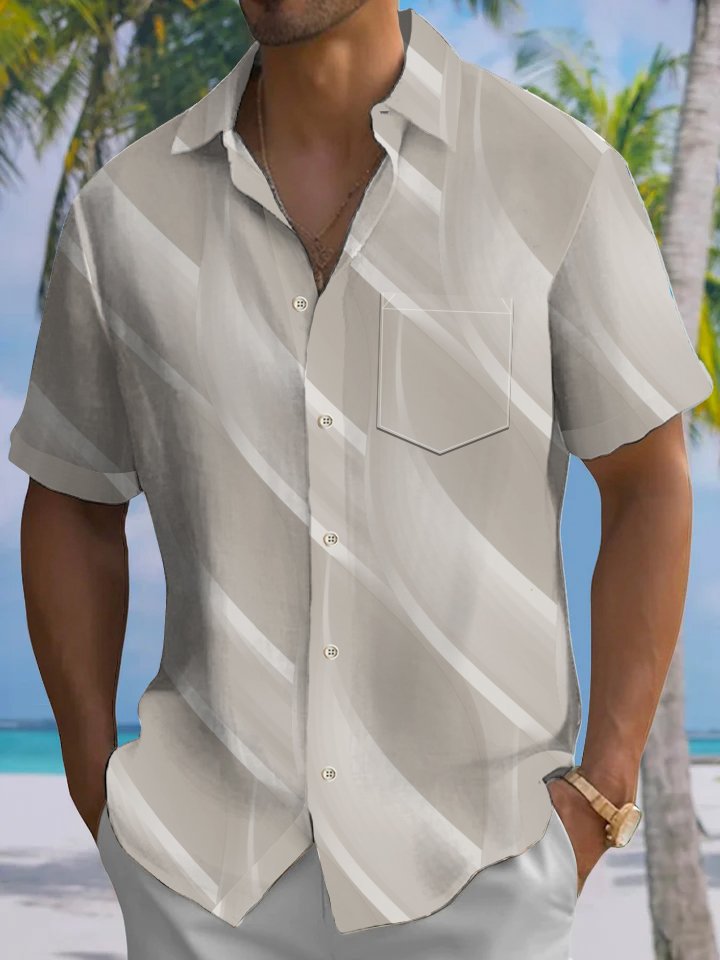 Alohadaddy Hawaiian Everyday Casual Geometric Print Art Button Pocket Cardigan Stretch Large Size Short Sleeve Shirt