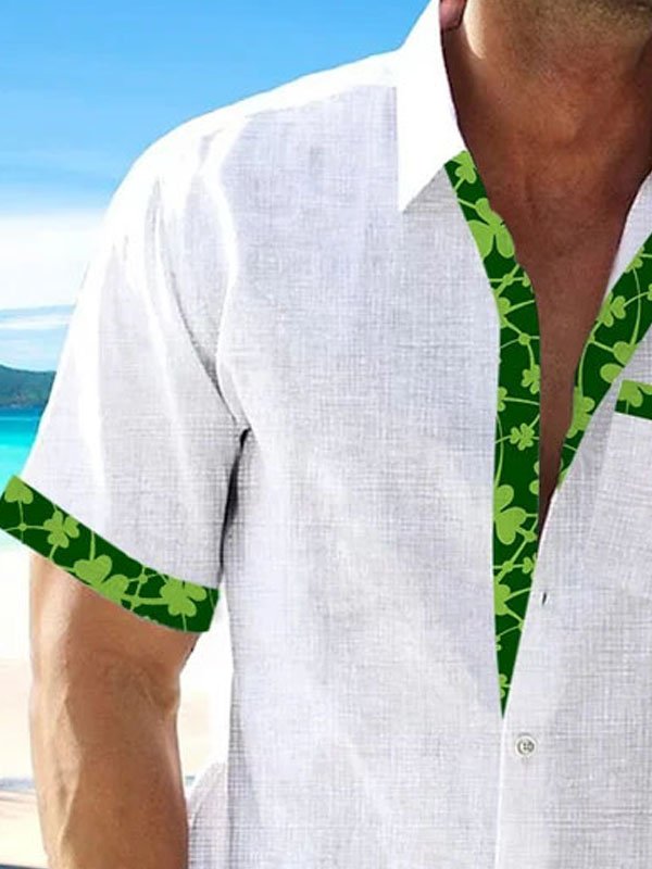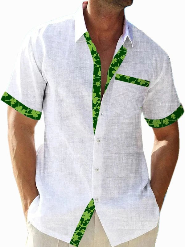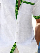 Alohadaddy Hawaiian Plant Leaves Contrast Print Men's Button Pocket Short Sleeve Shirt